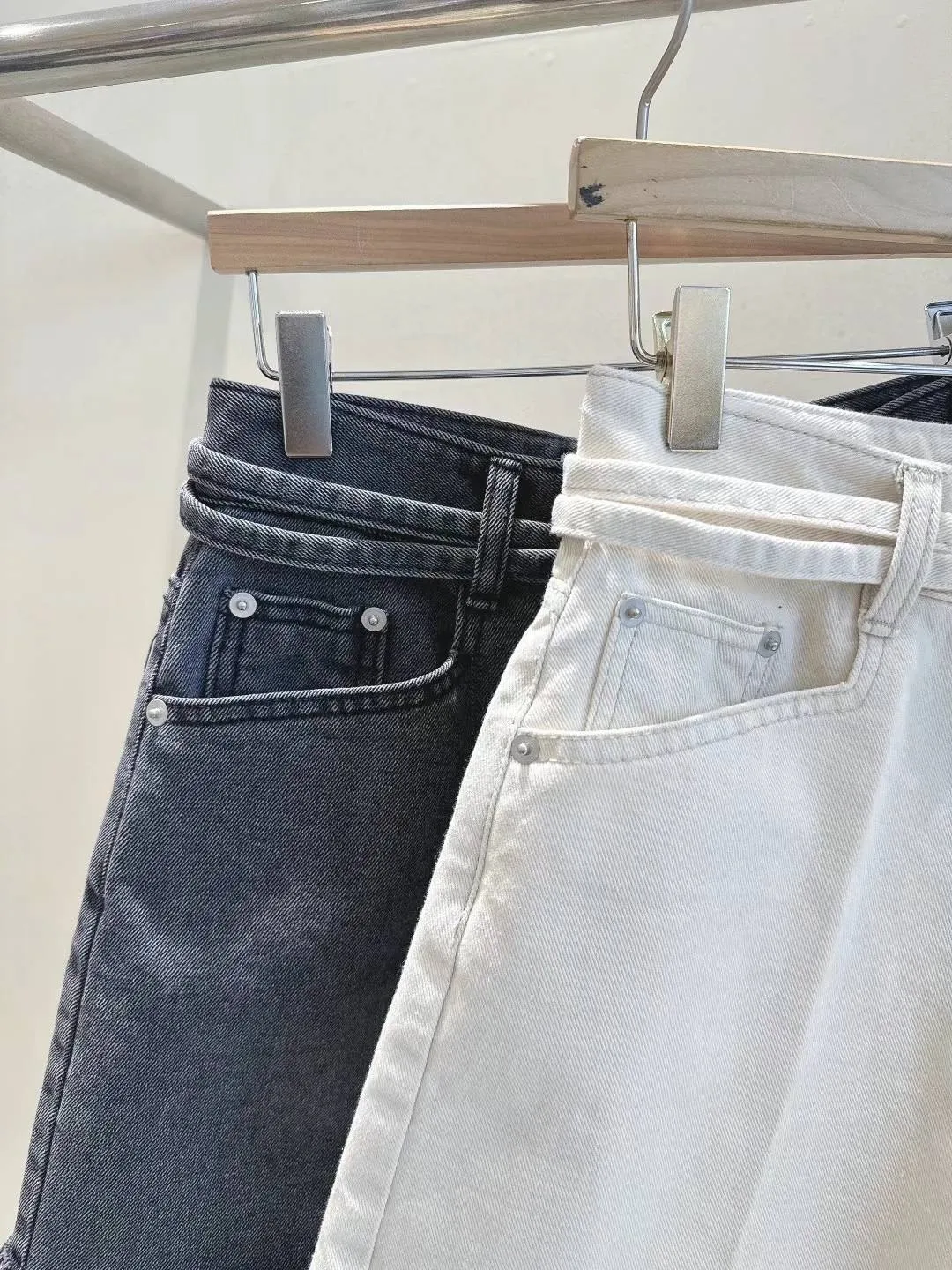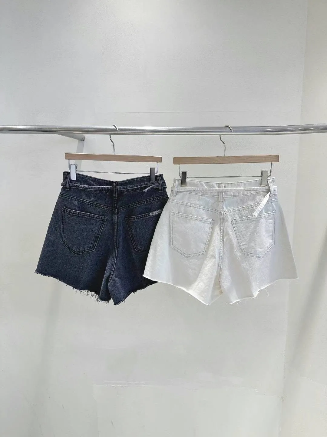 KM606不收邊薄款腰帶丹寧短褲(附腰帶) 米 灰 S M L XL 官網價$980 線上價$950