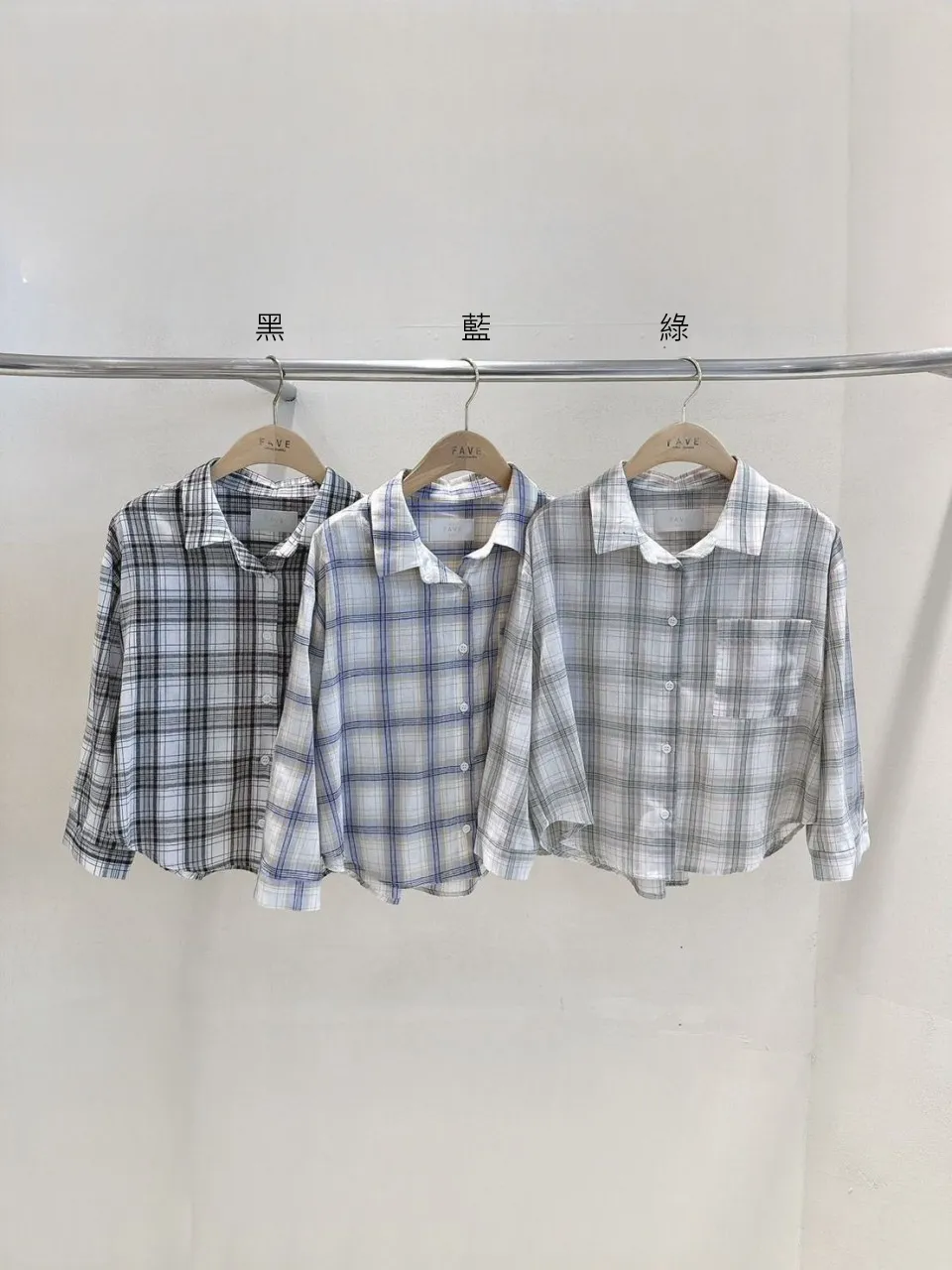 KM608薄款格紋短版襯衫 綠 藍 黑 官網價$920 線上價$890