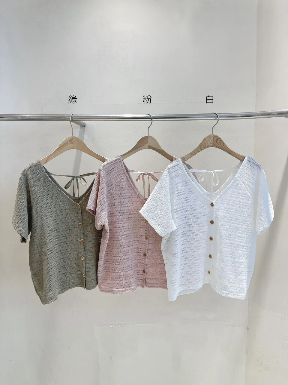 KM619品牌感簍空針織上衣 白 粉 綠 官網價$970 線上價$940
