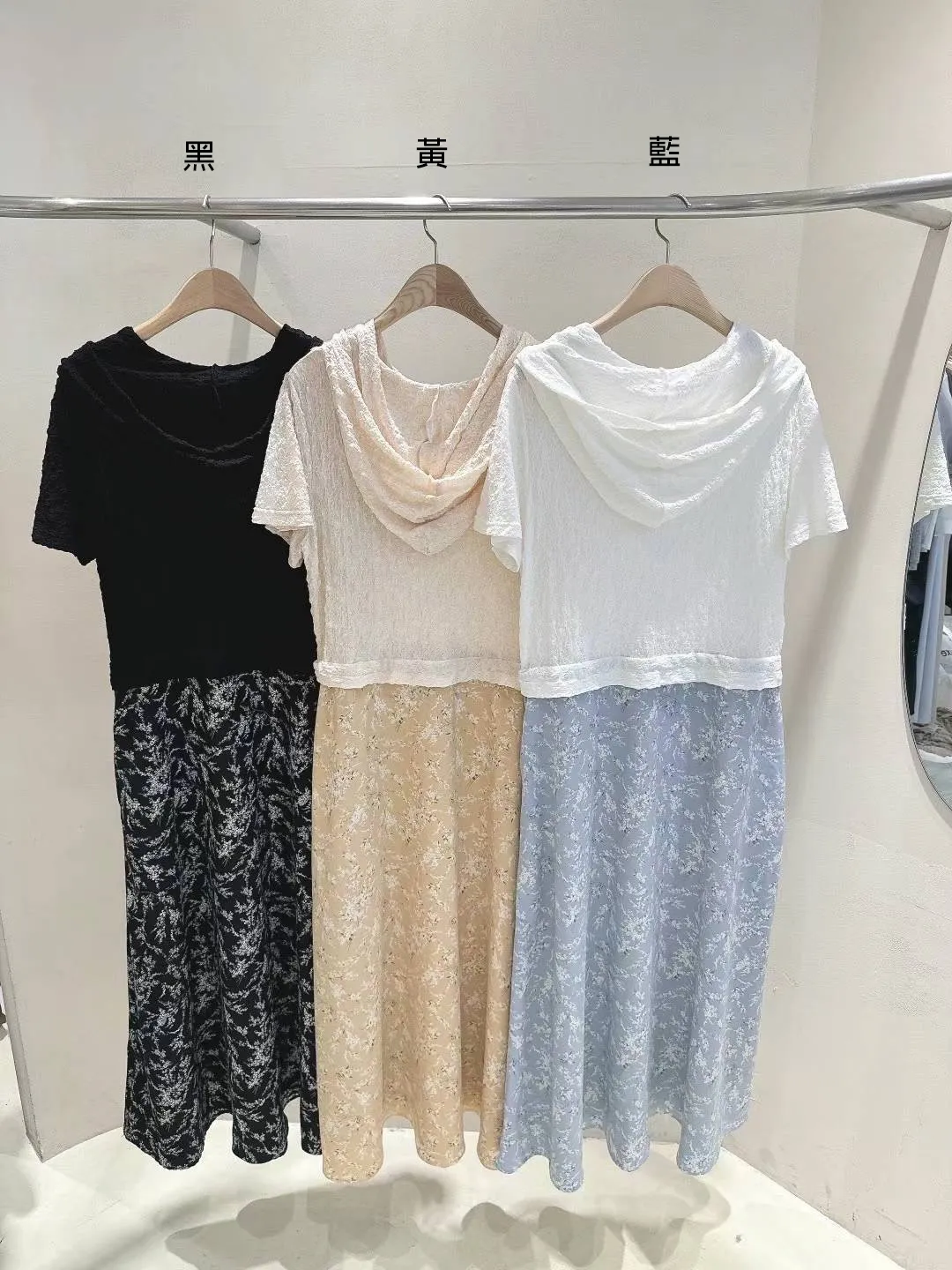 人造絲+雪紡+尼龍 腰綁繩 不易皺面料 經典版本連身洋裝 連帽休閒