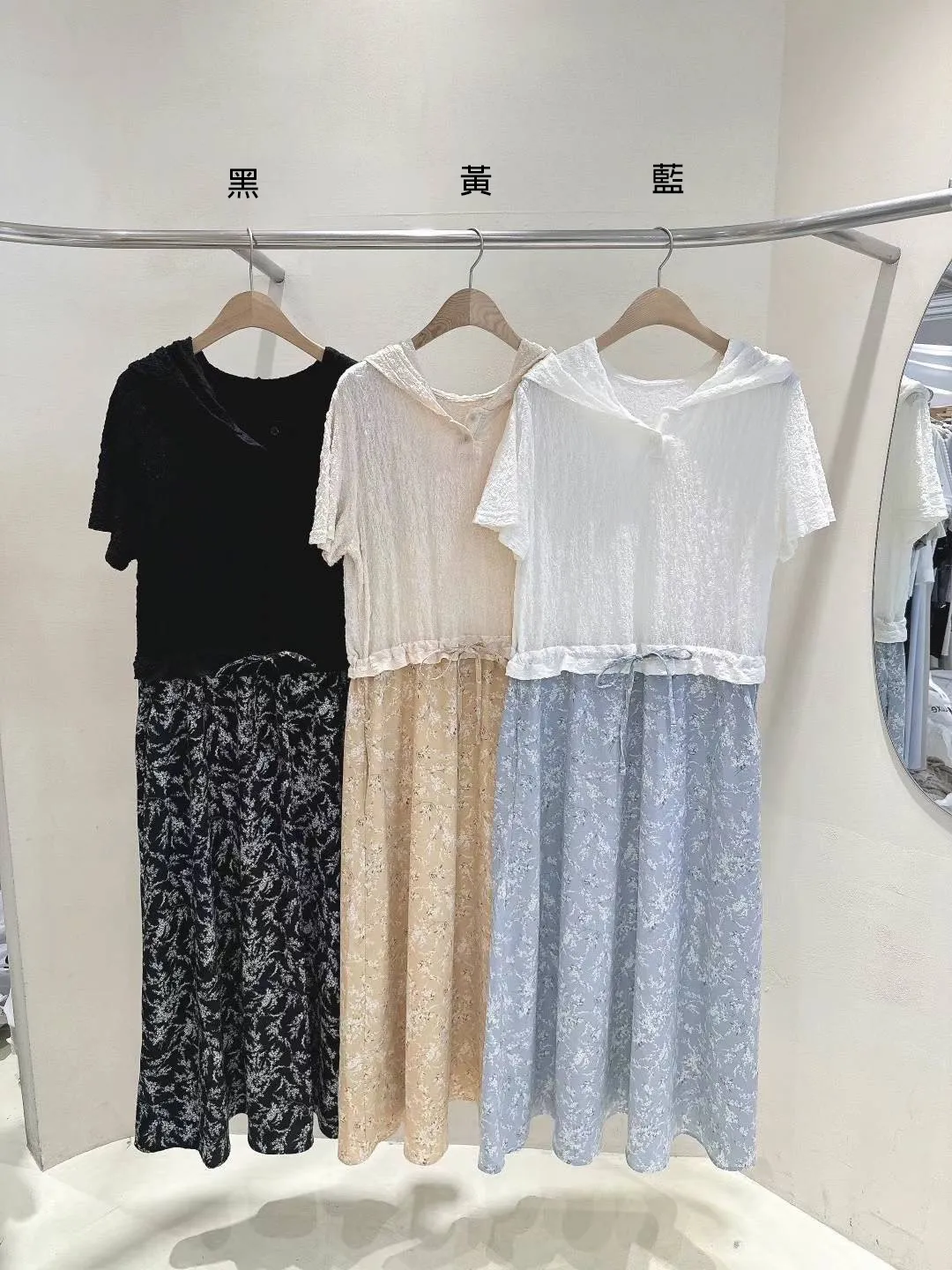 KM621雪紡細緻花草連身洋裝(裙子分色) 藍 黃 黑 官網價$1550 線上價$1520