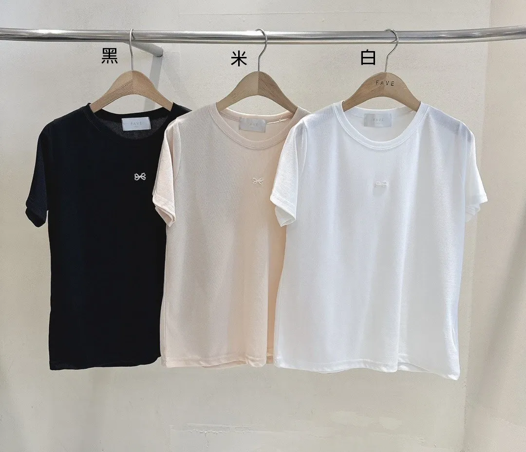 KM624推薦款一個小小蝴蝶結可愛Tshirt 白 米 黑 官網價$620 線上價$590聚酯+彈力,柔軟舒適 親膚有彈性 極薄輕透 適合台灣夏天