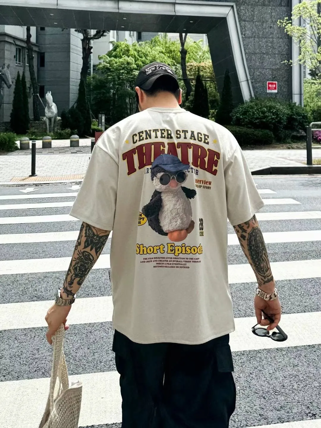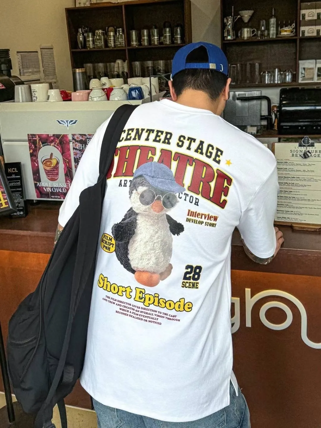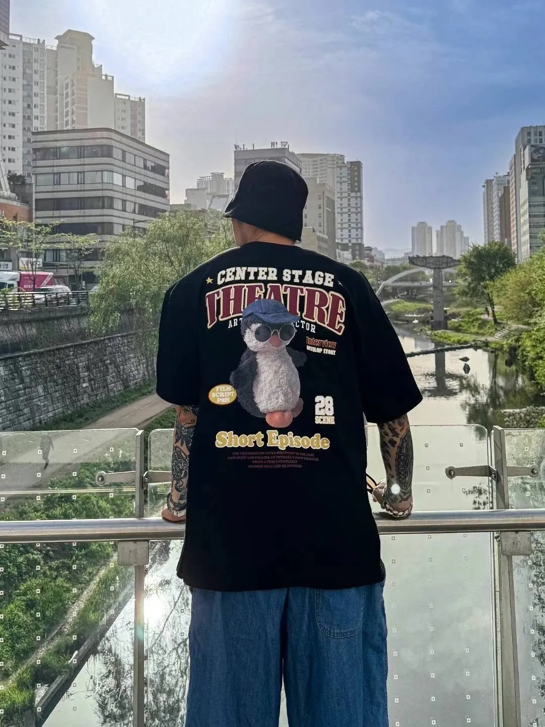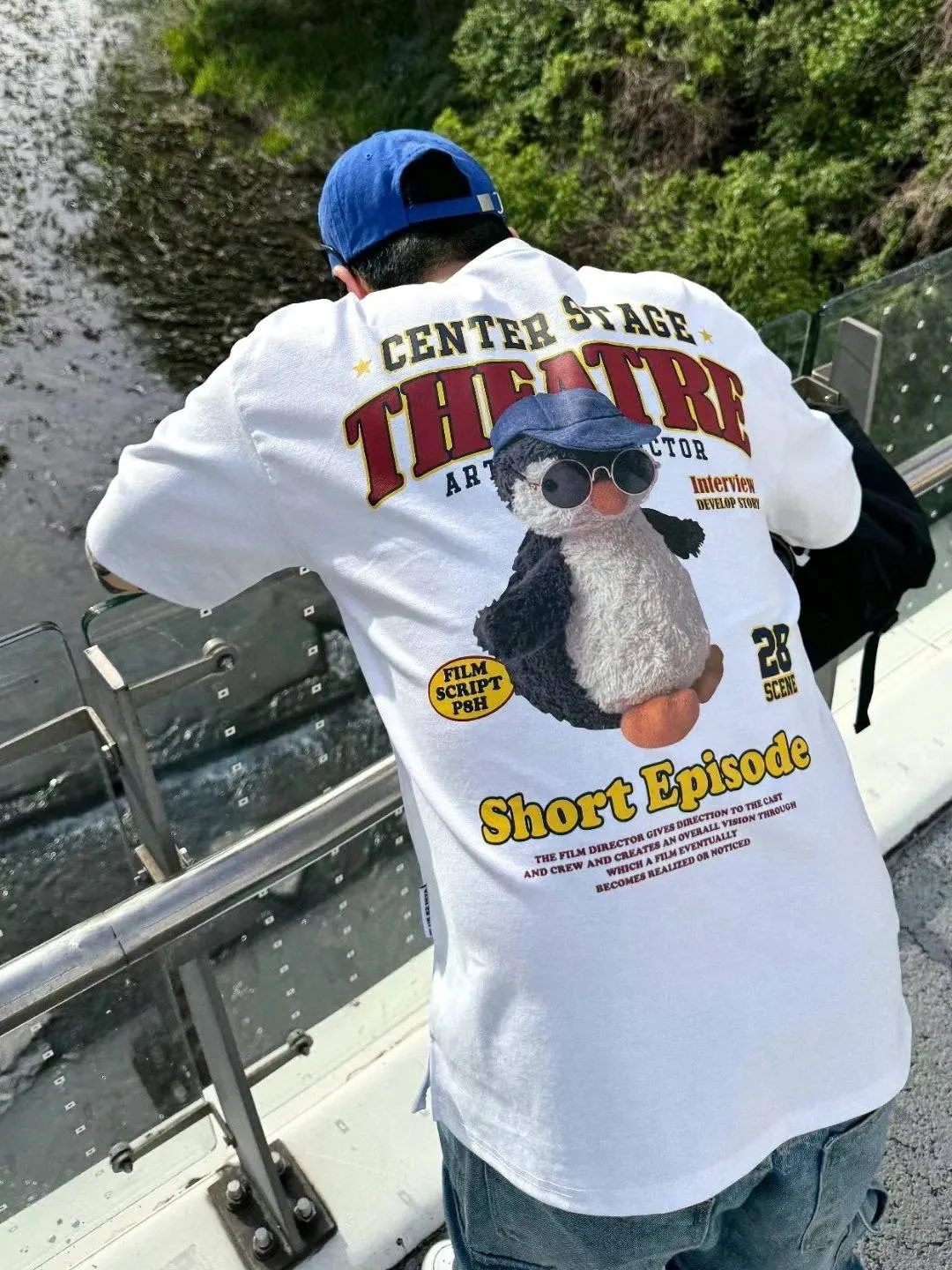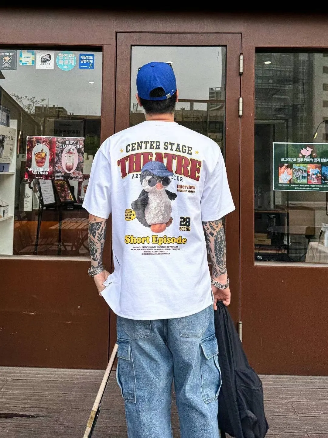 KM642可愛墨鏡棒球帽企鵝Tshirt 白 米 黑 官網價$660 線上價$630