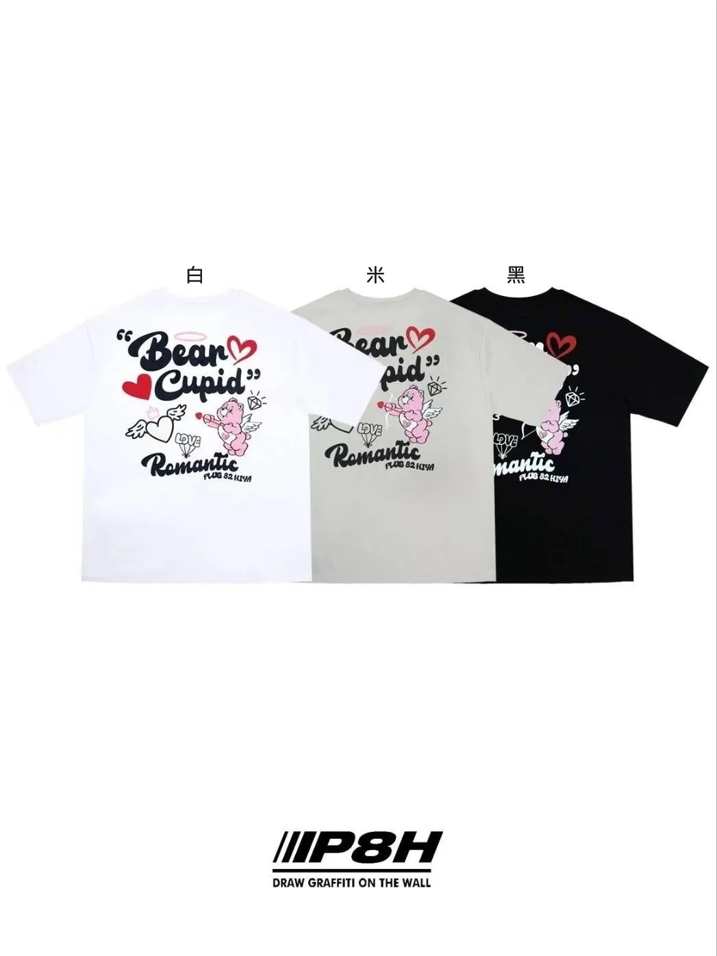 KM648邱比特愛心熊熊Tshirt 白 米 黑 官網價$620 線上價$590