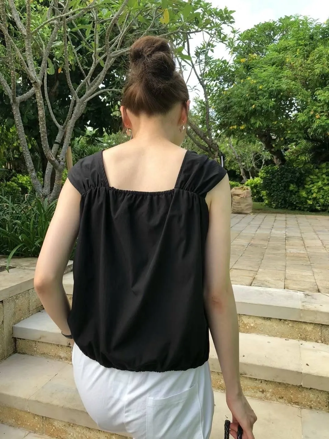 棉,質感氣質剪裁 後背下擺鬆緊 黑色高級感 白色微透光感 直接穿脫