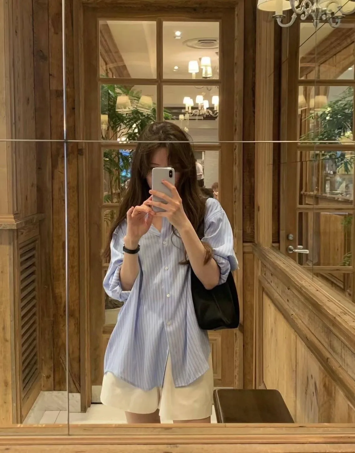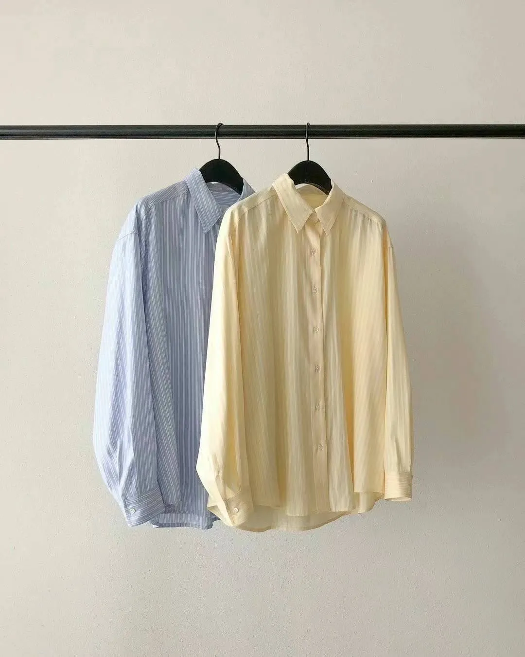 KM682質感細條長袖襯衫 黃 藍 官網價$1429 線上價$1399