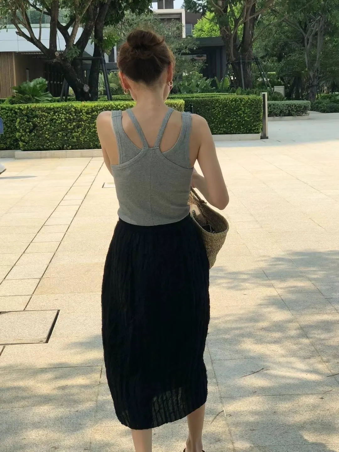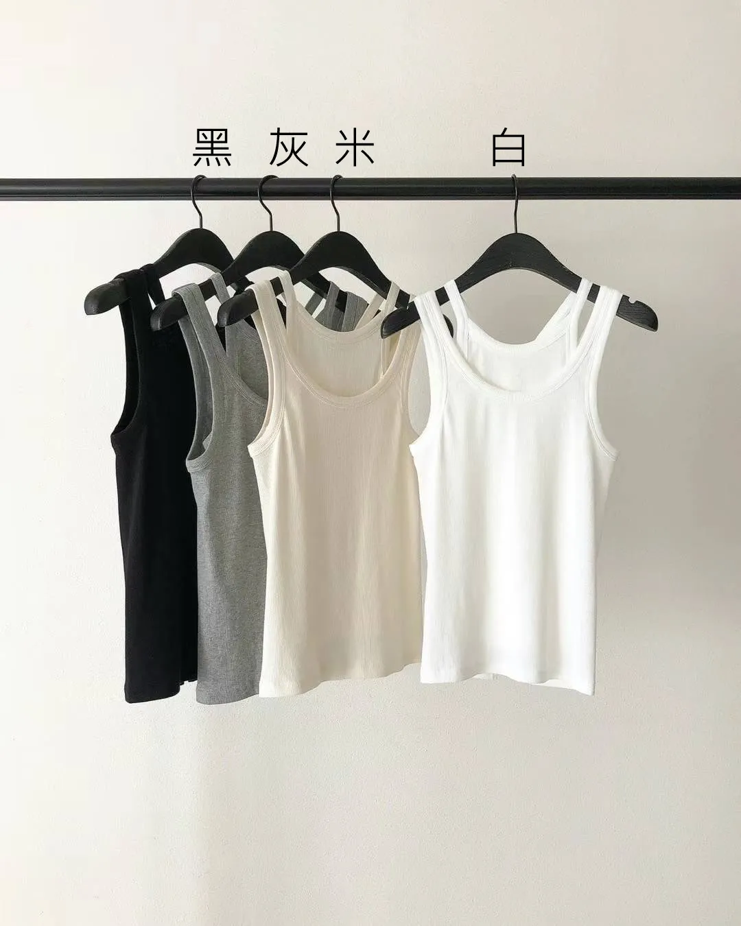 KM683雙層肩帶設計感背心 白 米 灰 黑 官網價$1050 線上價$1020