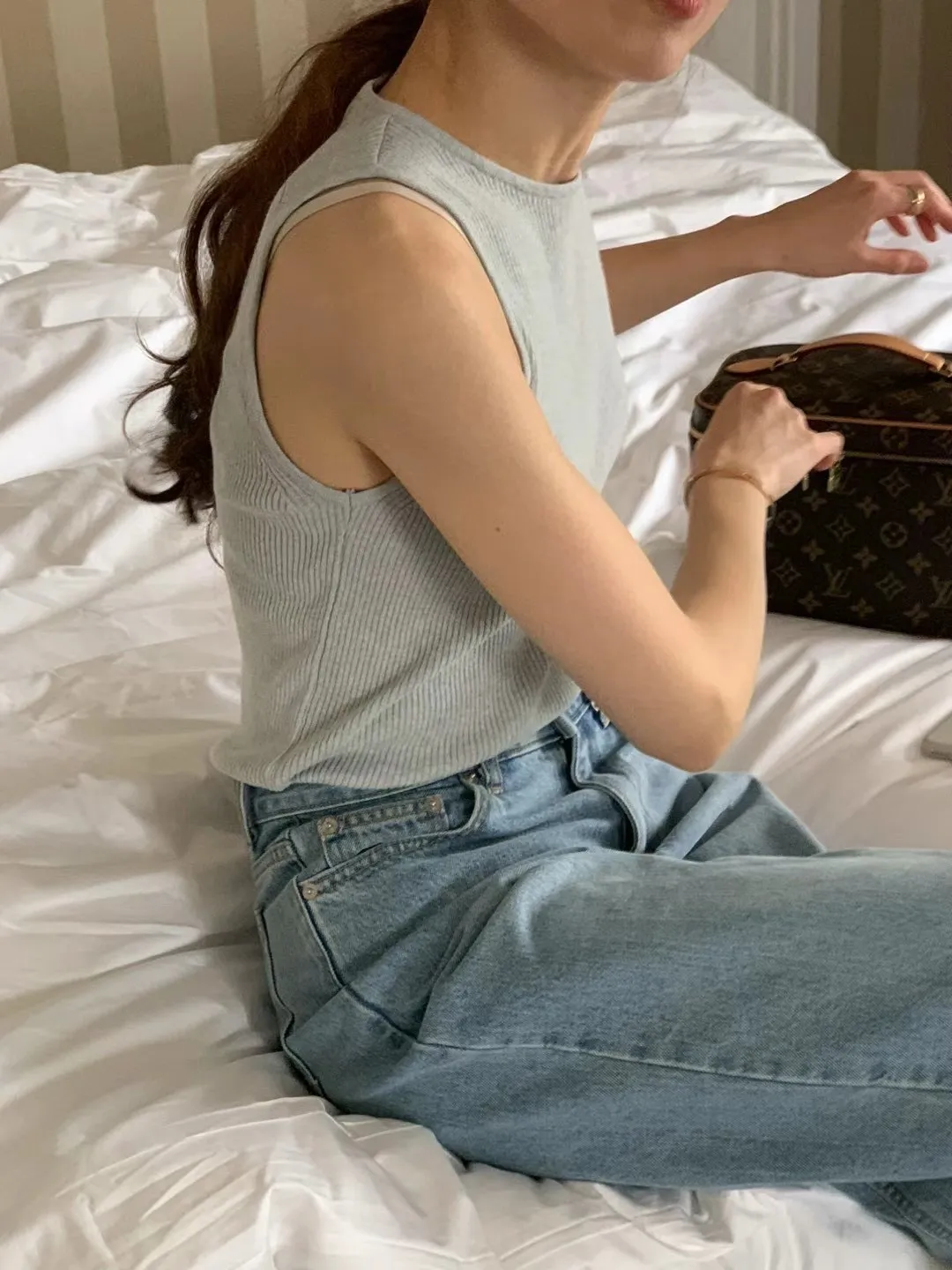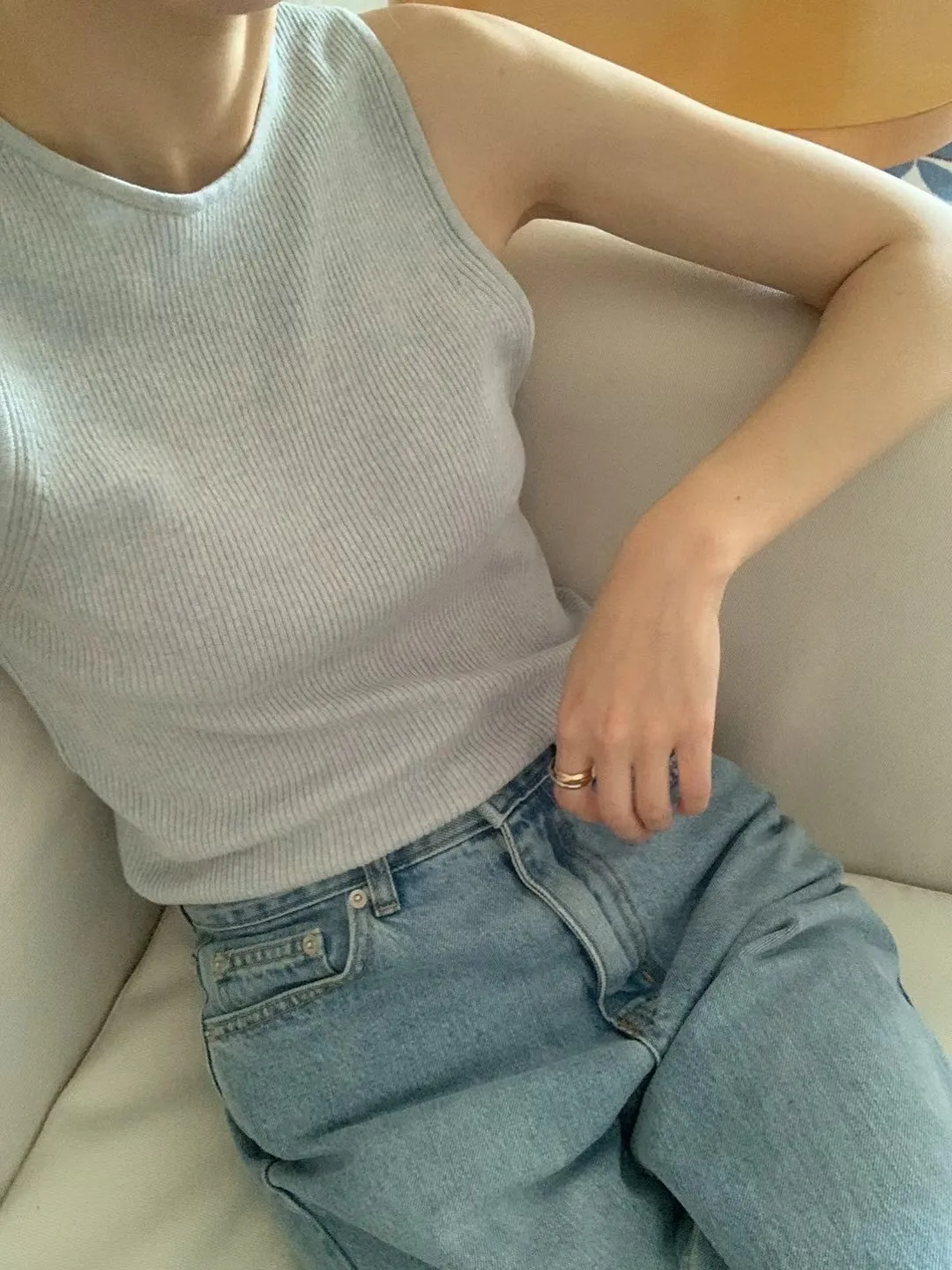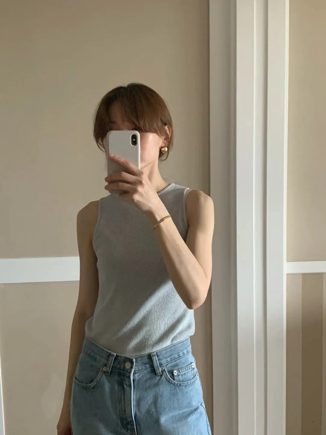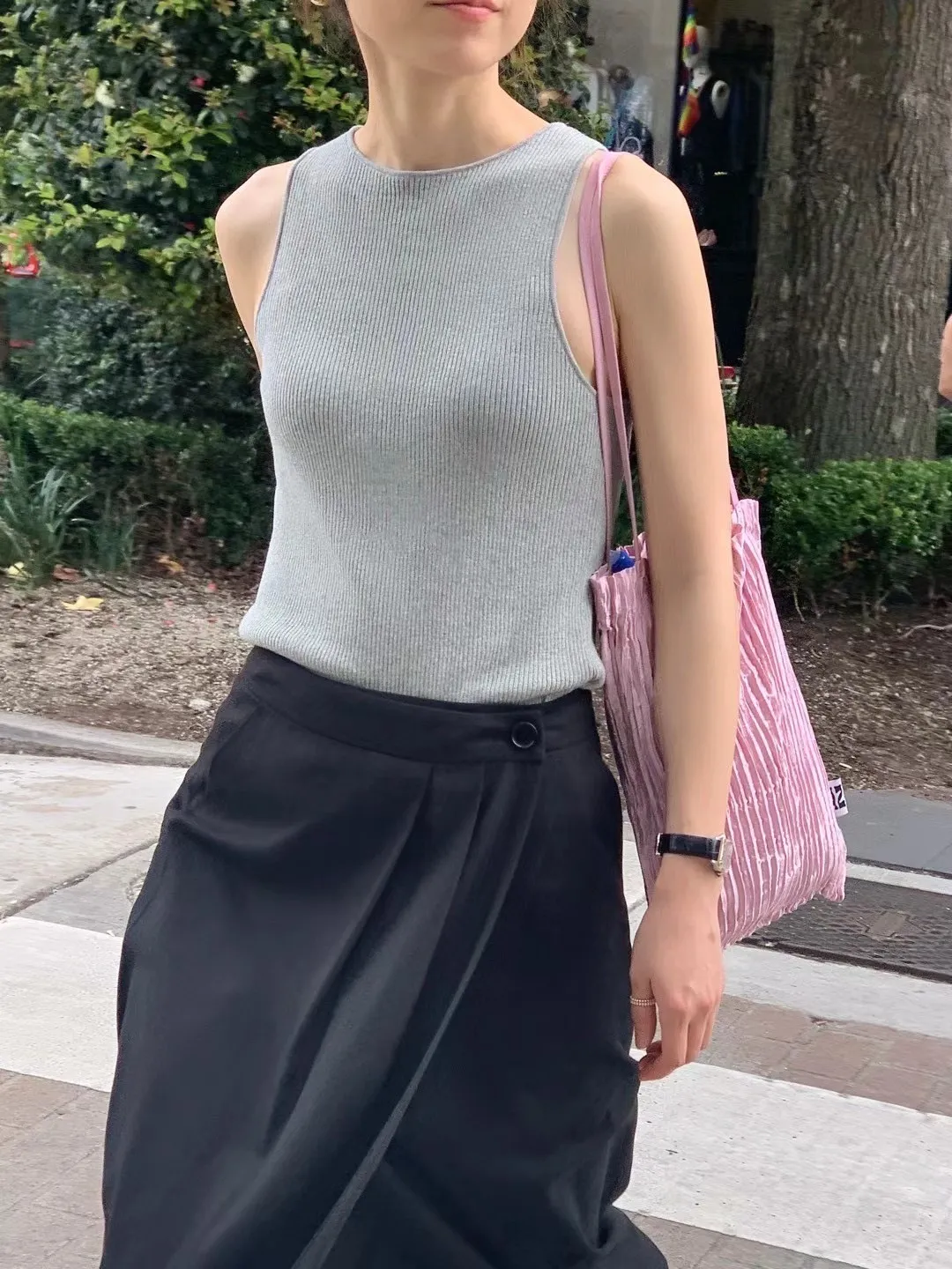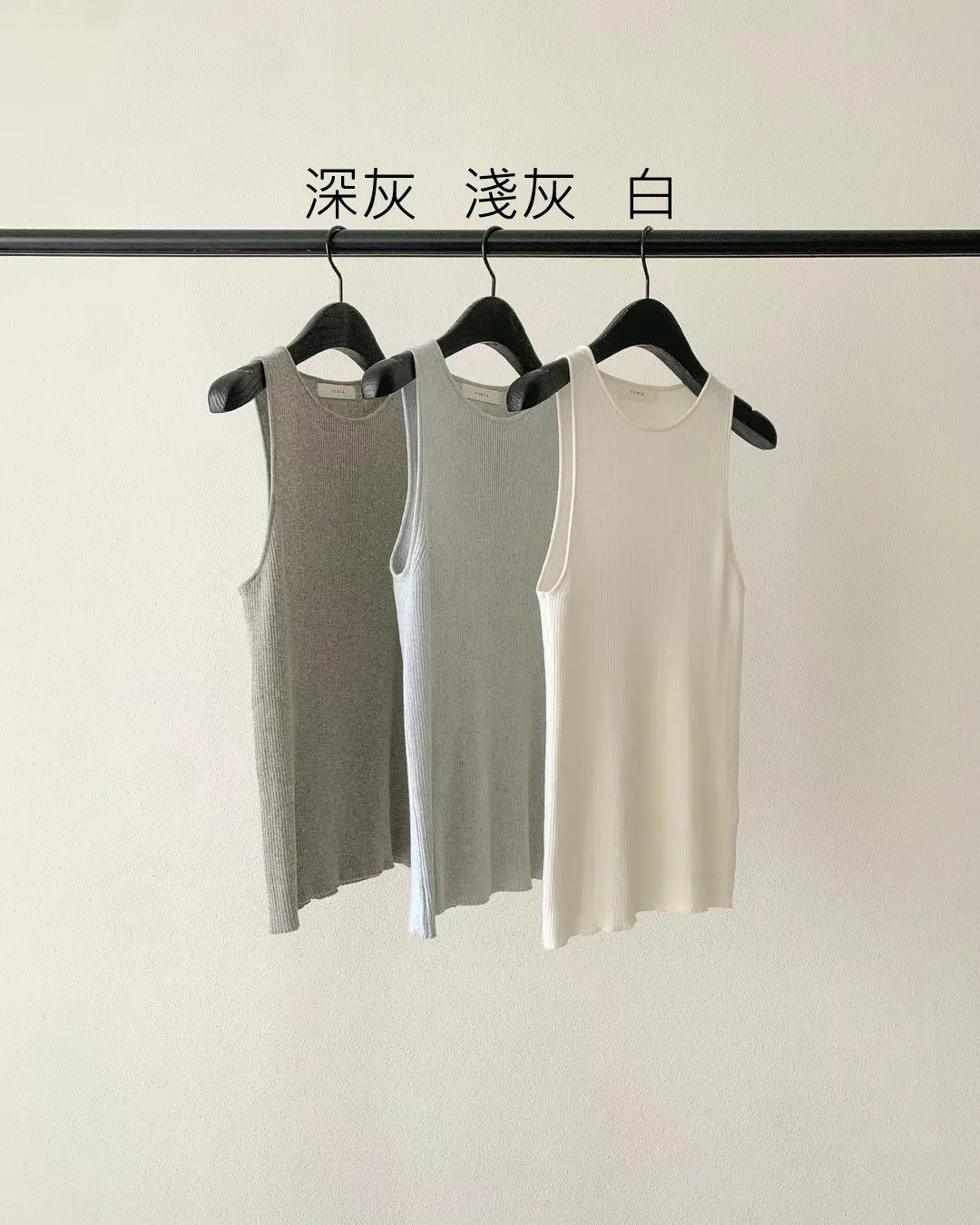 KM708細滾邊細坑條無袖背心 白 淺灰 深灰 官網價$990 線上價$960
