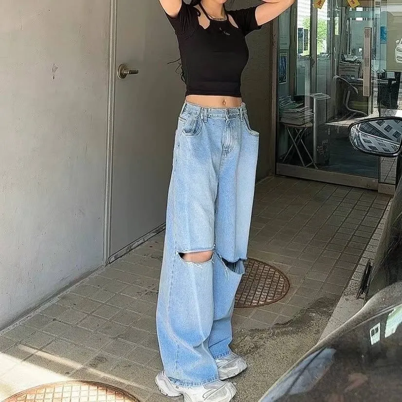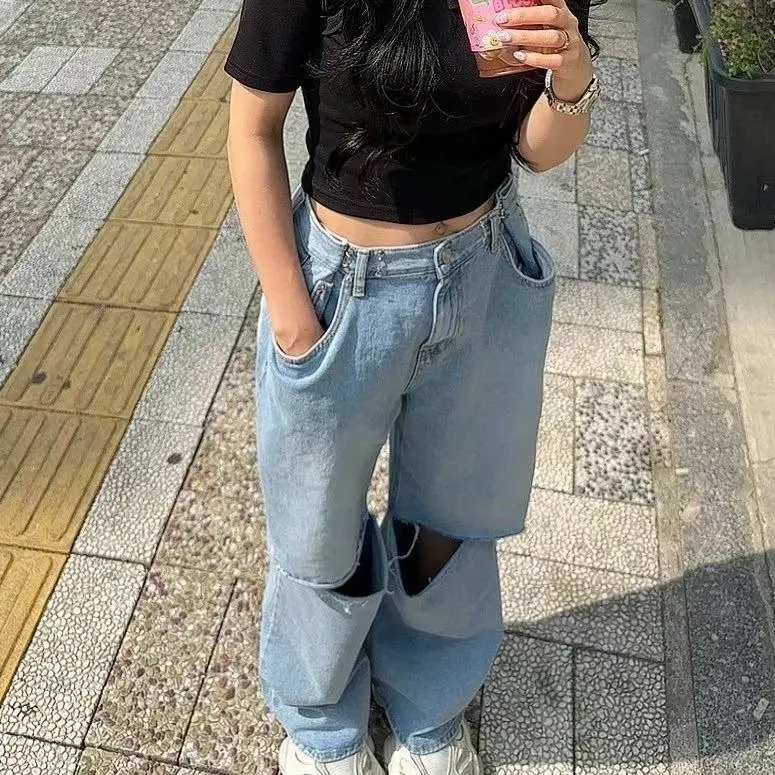 棉 釦鍊穿脫 側腰鈎釦調節 有口袋 屁股可愛蝴蝶結 膝蓋割破設計