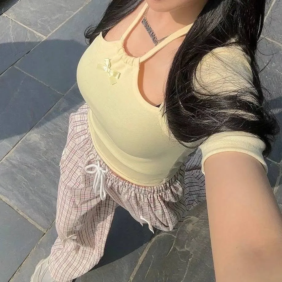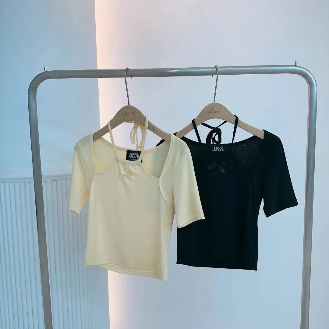 KM723簍肩設計蝴蝶結層次感上衣 黃 黑 官網價$590 線上價$560