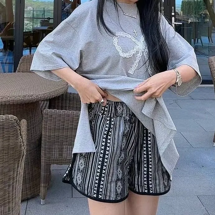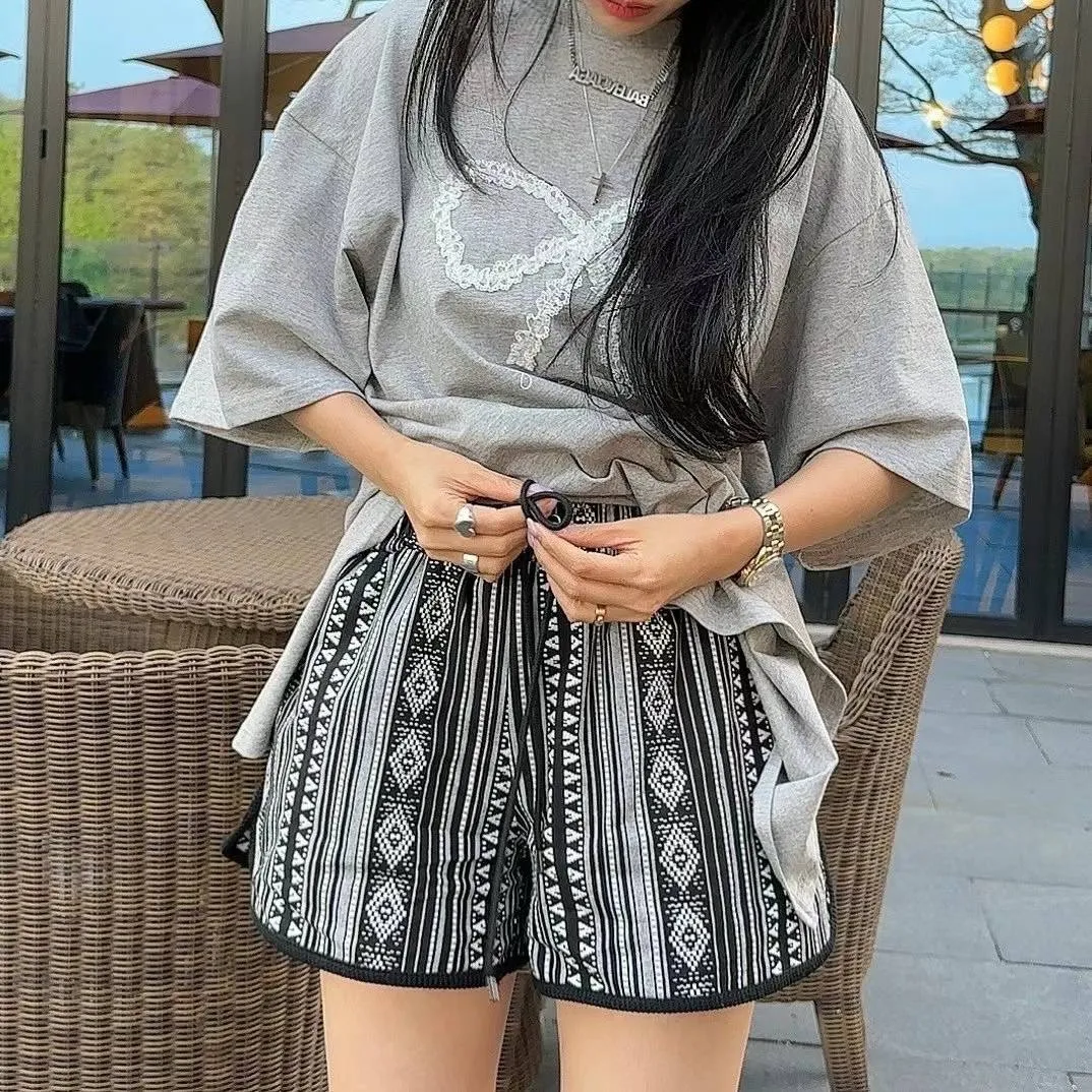 KM728質感藝術印花渡假短褲 藍 黑 官網價$699 線上價$669