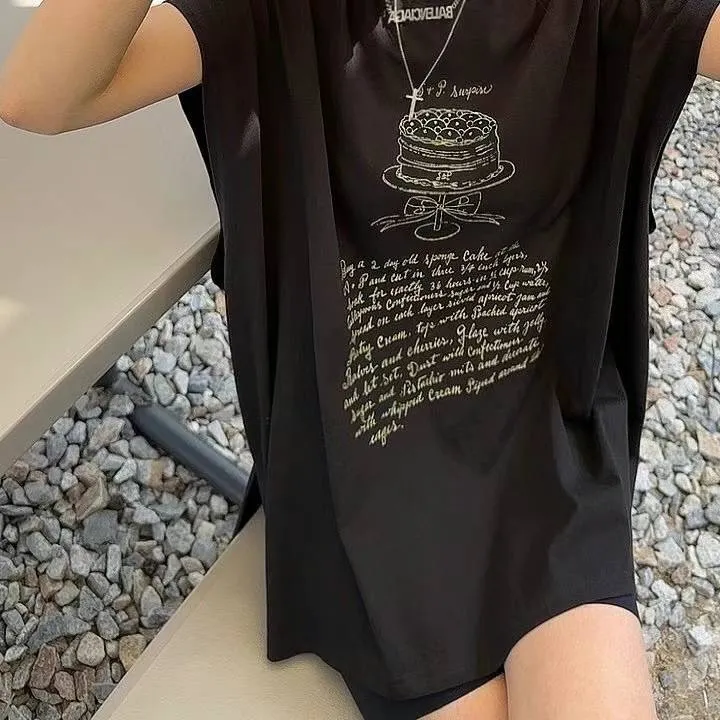 KM731可愛蛋糕英文Tshirt 白 黑 官網價$590 線上價$560