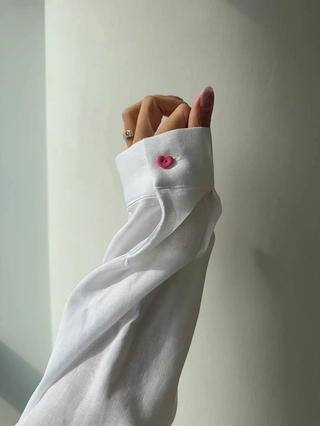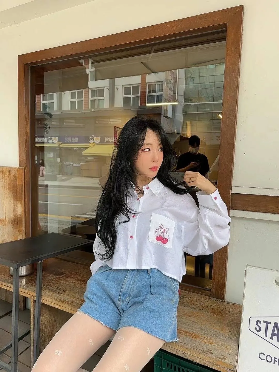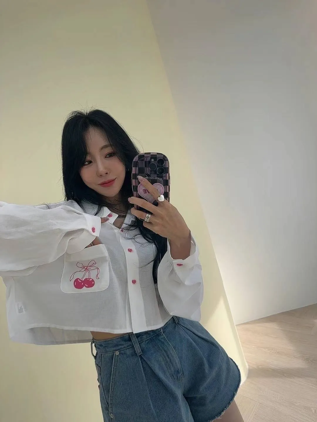 KM736粉紅愛心釦櫻桃襯衫 白 黑 官網價$970 線上價$940