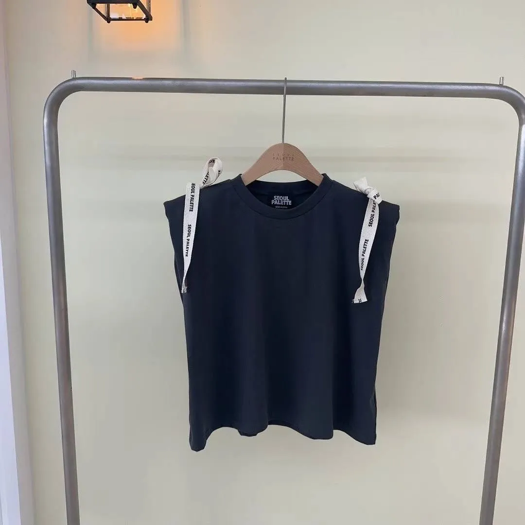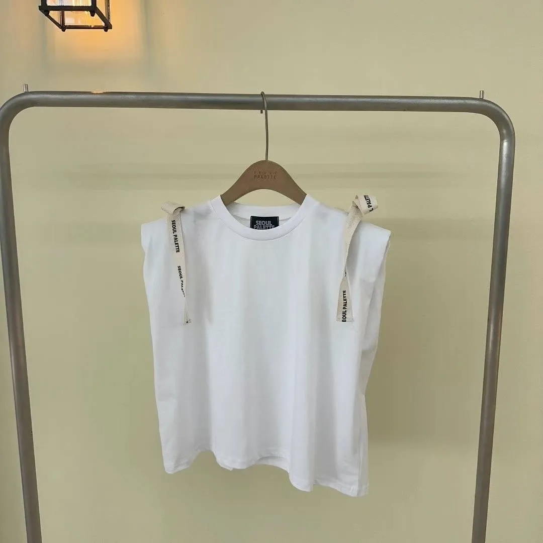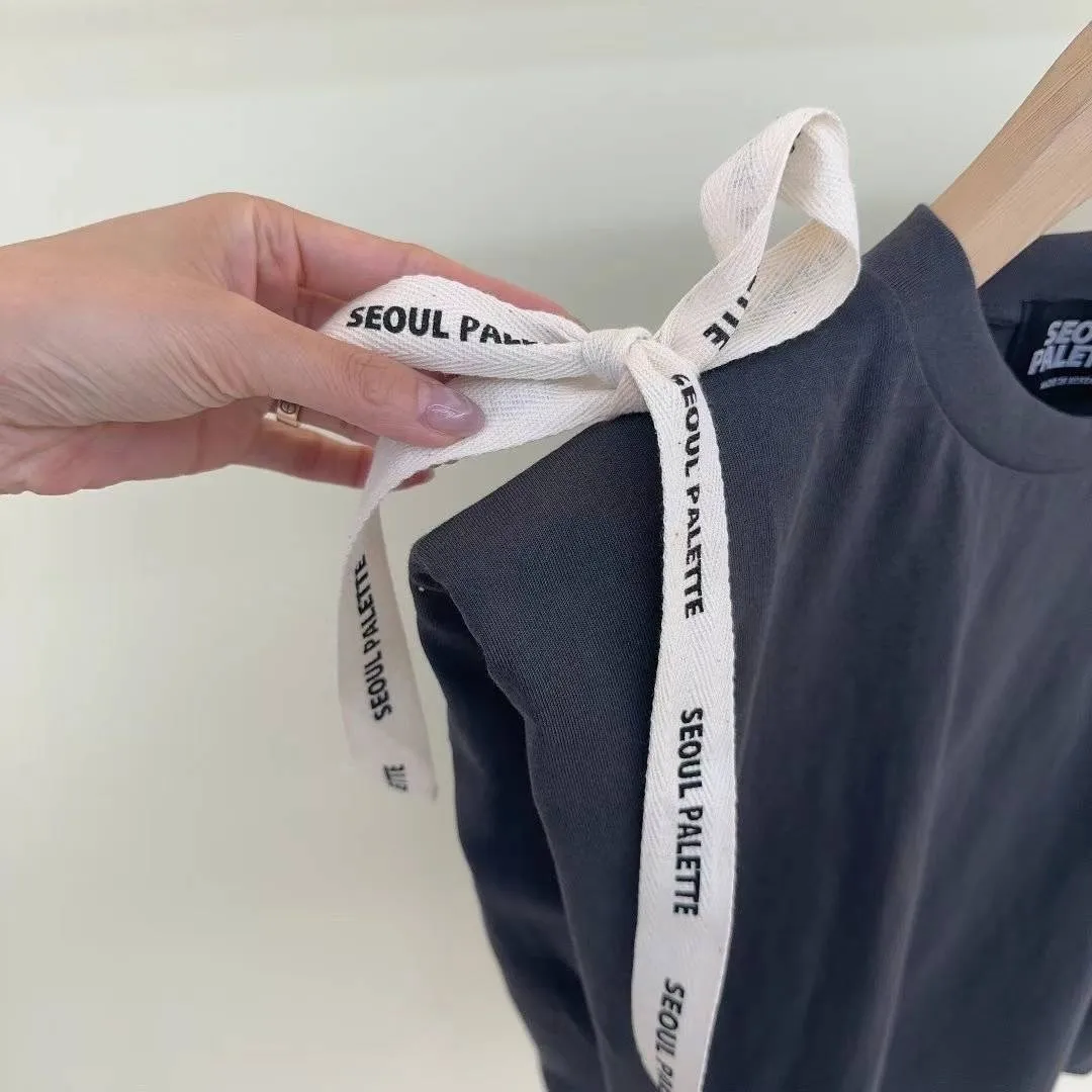 KM738英文綁帶美肩上衣 白 灰 官網價$629 線上價$599