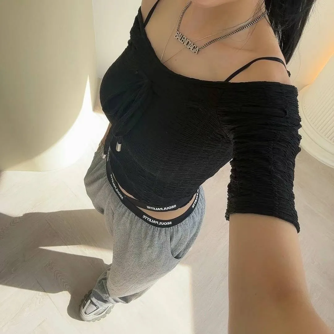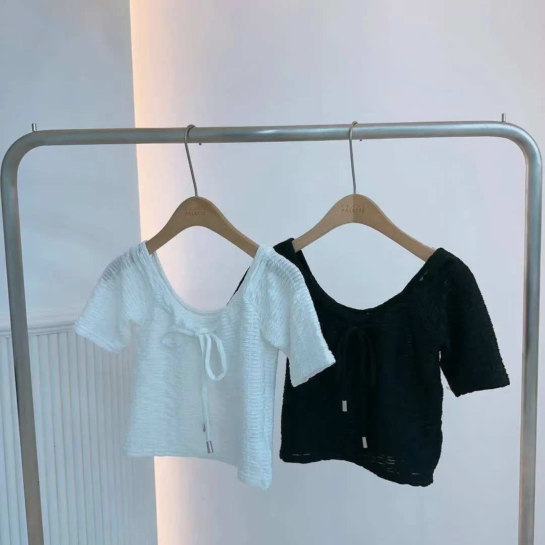 KM739大U領胸綁帶上衣 白 黑 官網價$599 線上價$569