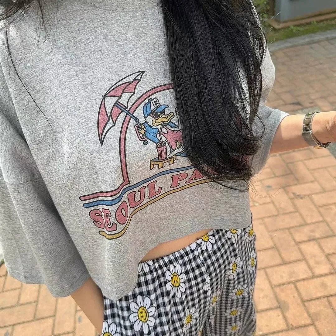 KM741翹腿小跩鴨海灘日光浴Tshirt 白 灰 官網價$620 線上價$590