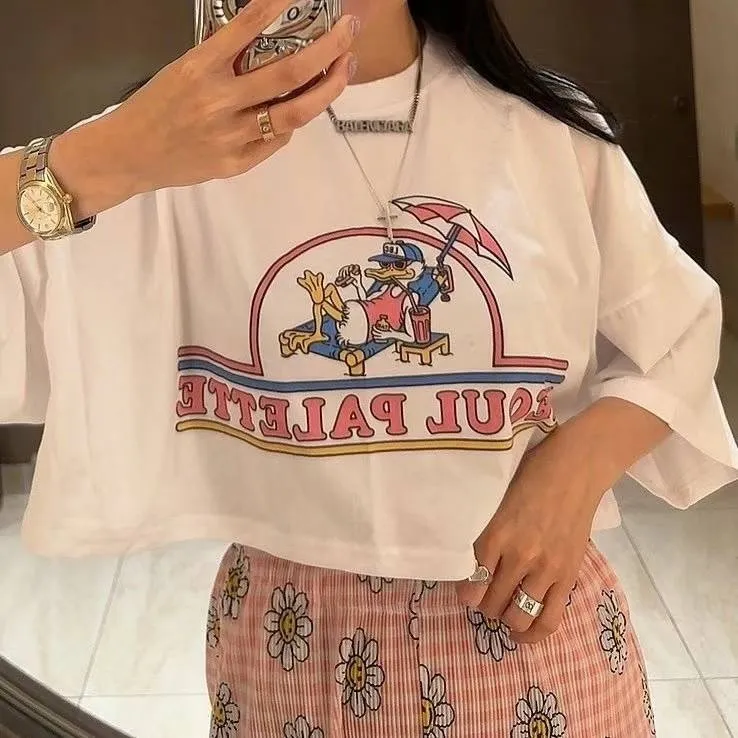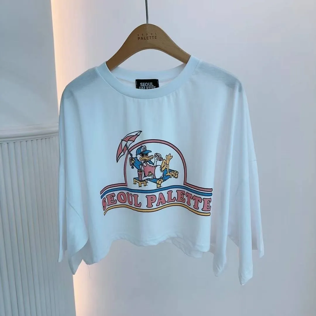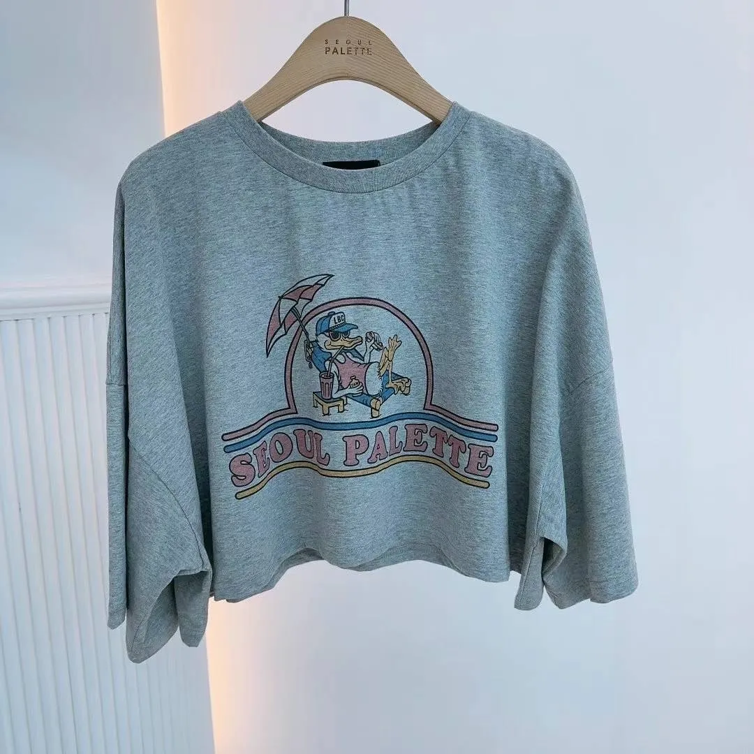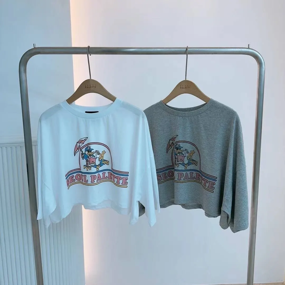 棉,寬鬆舒適 落肩設計 薄款小露腰短版 透氣舒適