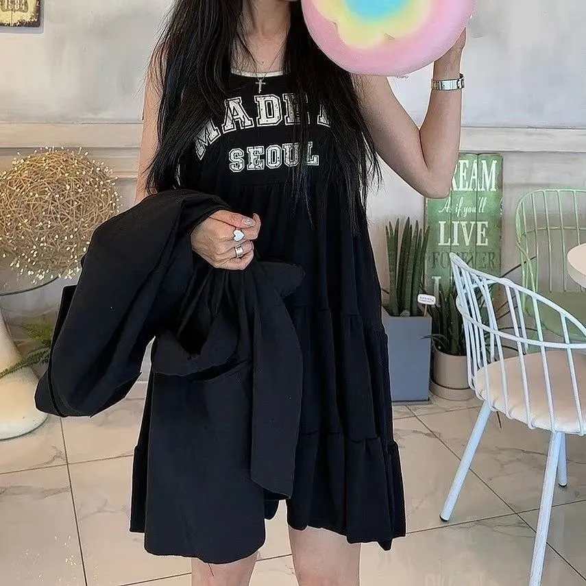 KM746俏麗肩綁帶運動風洋裝 白 黑 官網價$970 線上價$940