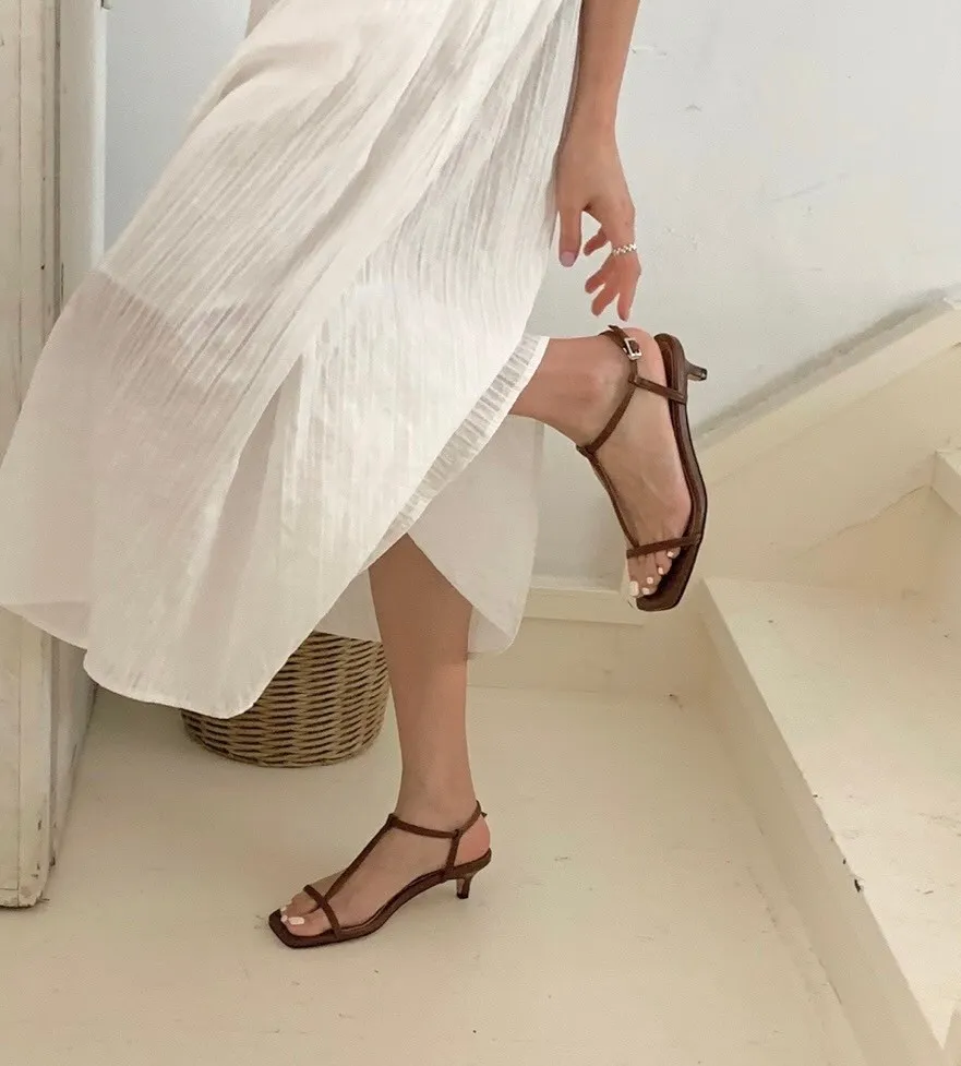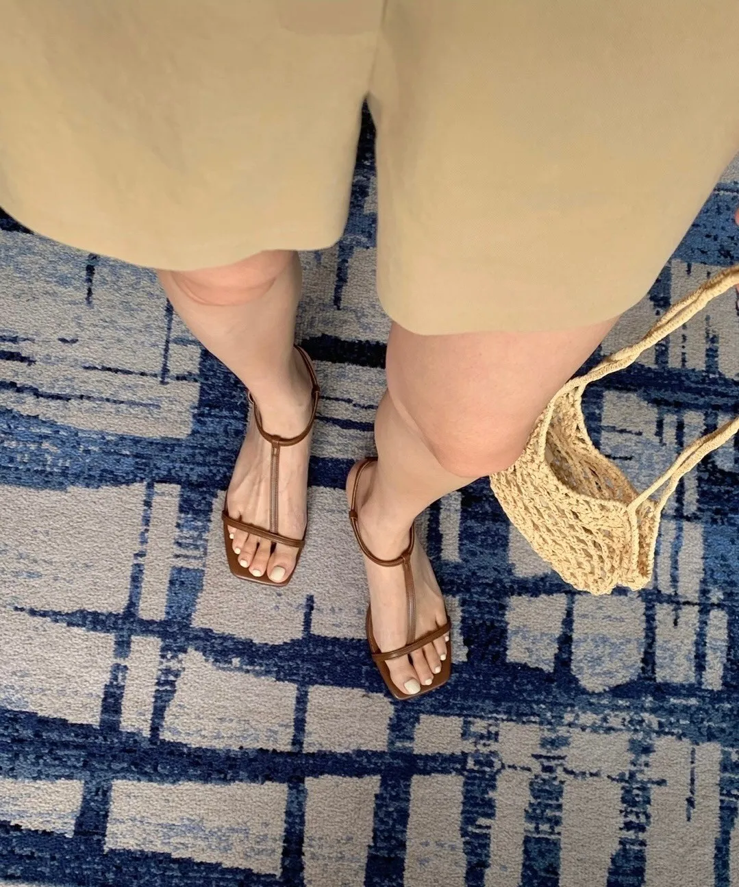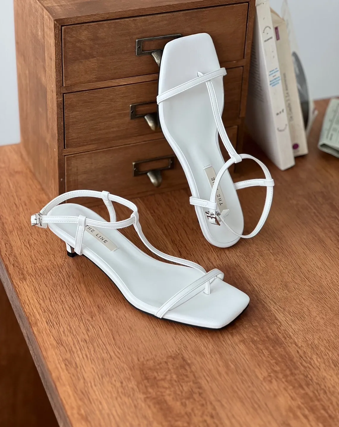 KM774方頭十字低跟鞋 白 咖 黑 230-250(有半號) $930