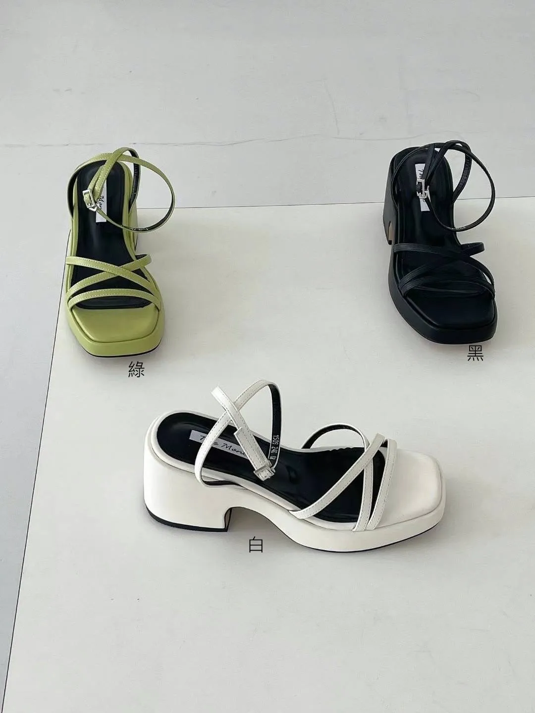 KM800直播搭配粗跟涼鞋 白 綠 黑225-250(有半號) $960