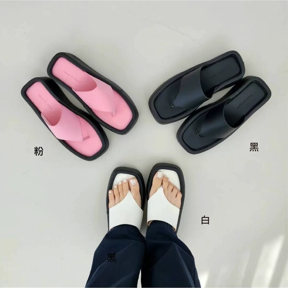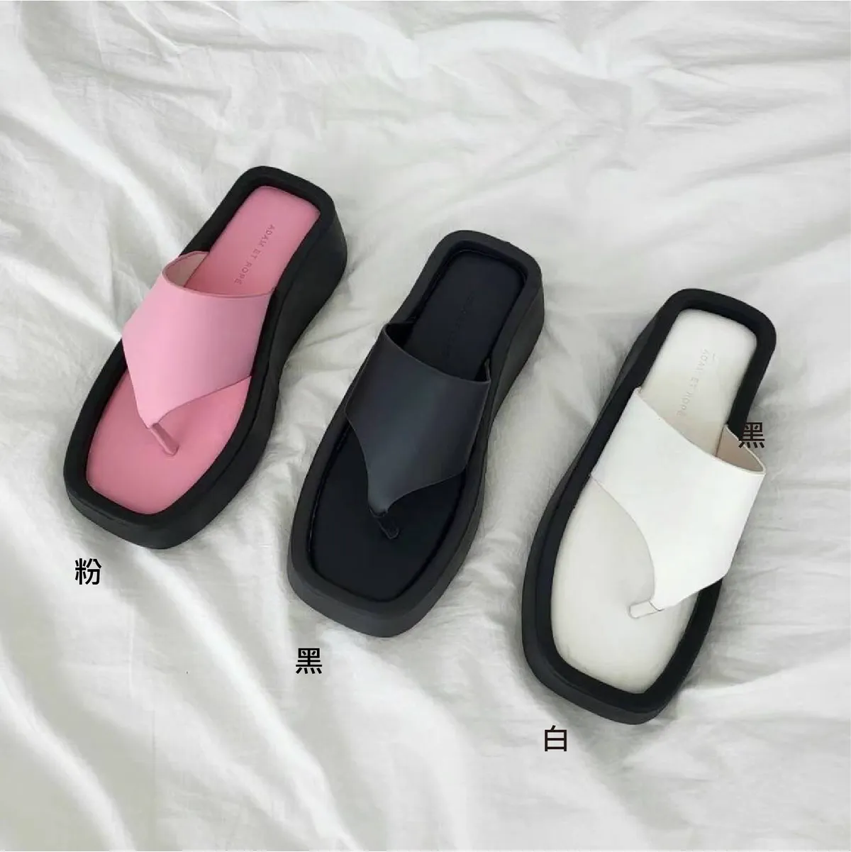 KM805時尚態度厚底拖鞋 白 黑 粉 230-250(有半號) $780
