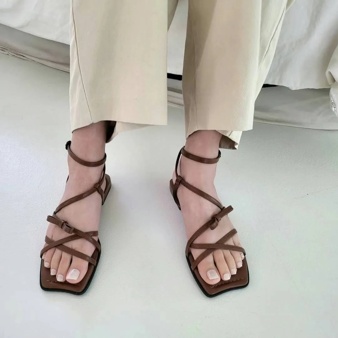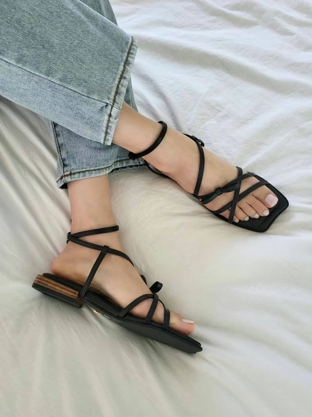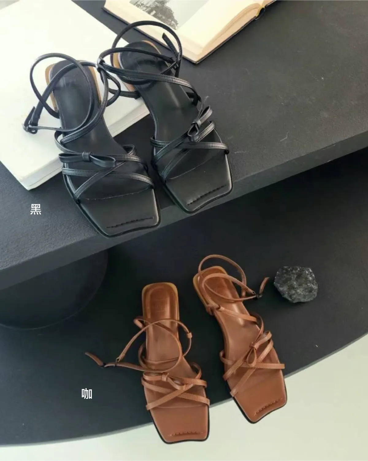 KM806繞腳背交叉蝴蝶結涼鞋 咖 黑 230-250(有半號) $950