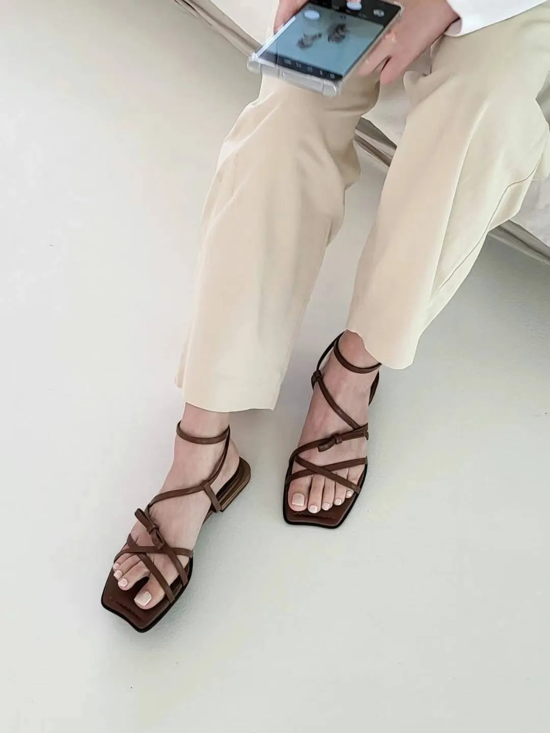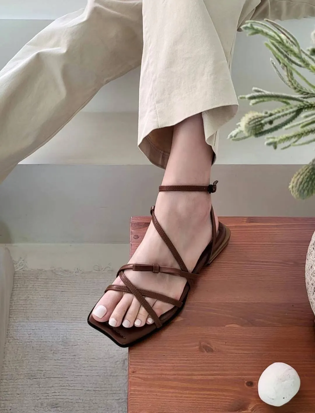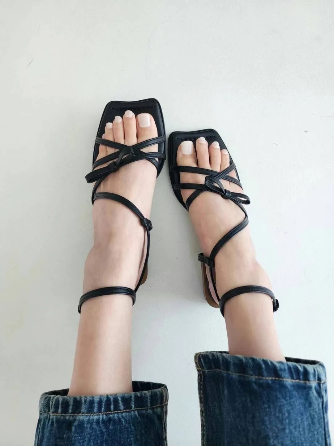 KM806繞腳背交叉蝴蝶結涼鞋 咖 黑 230-250(有半號) $950