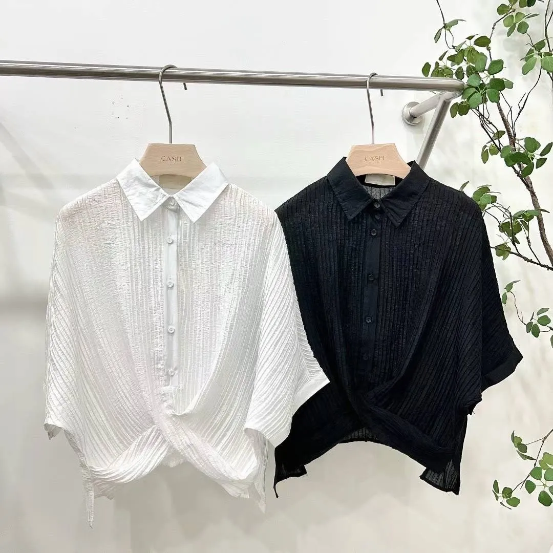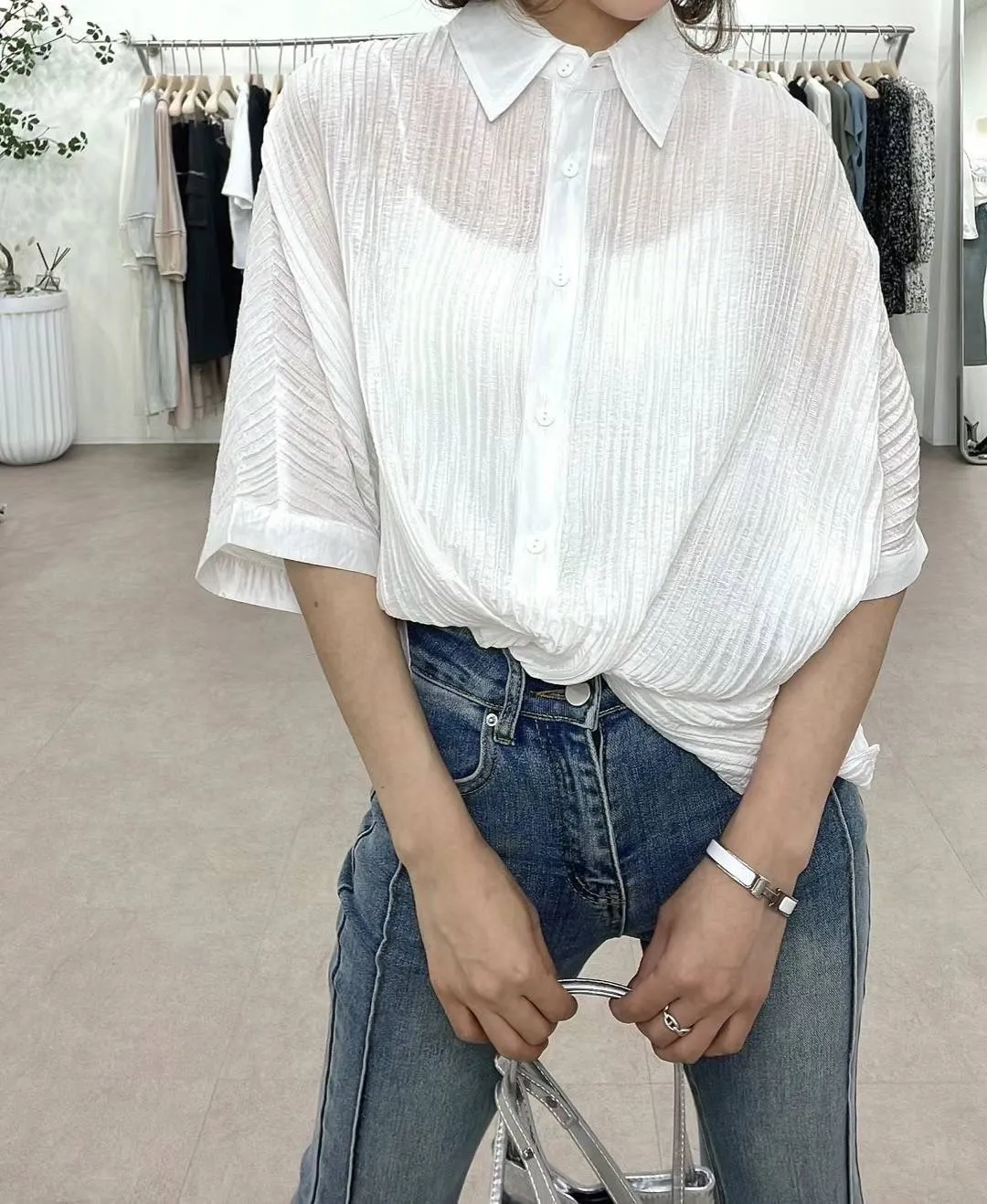 KM854天絲透光扭結美腰襯衫 白 黑 官網價$929 線上價$899