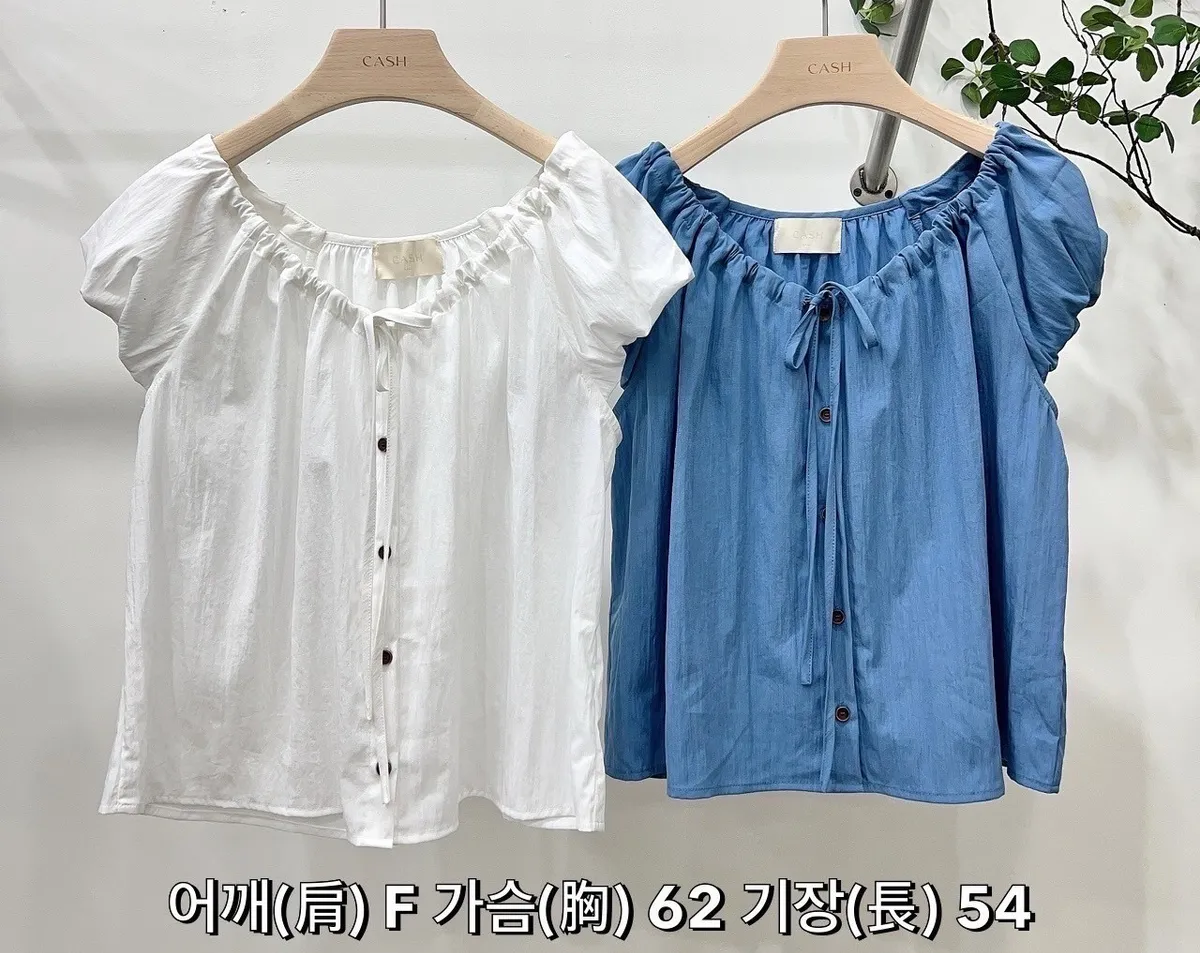 KM856胸綁帶木紋釦上衣 白 藍 官網價$929 線上價$899