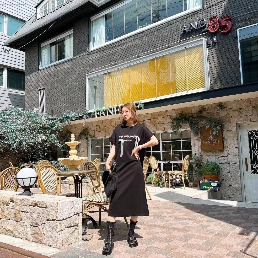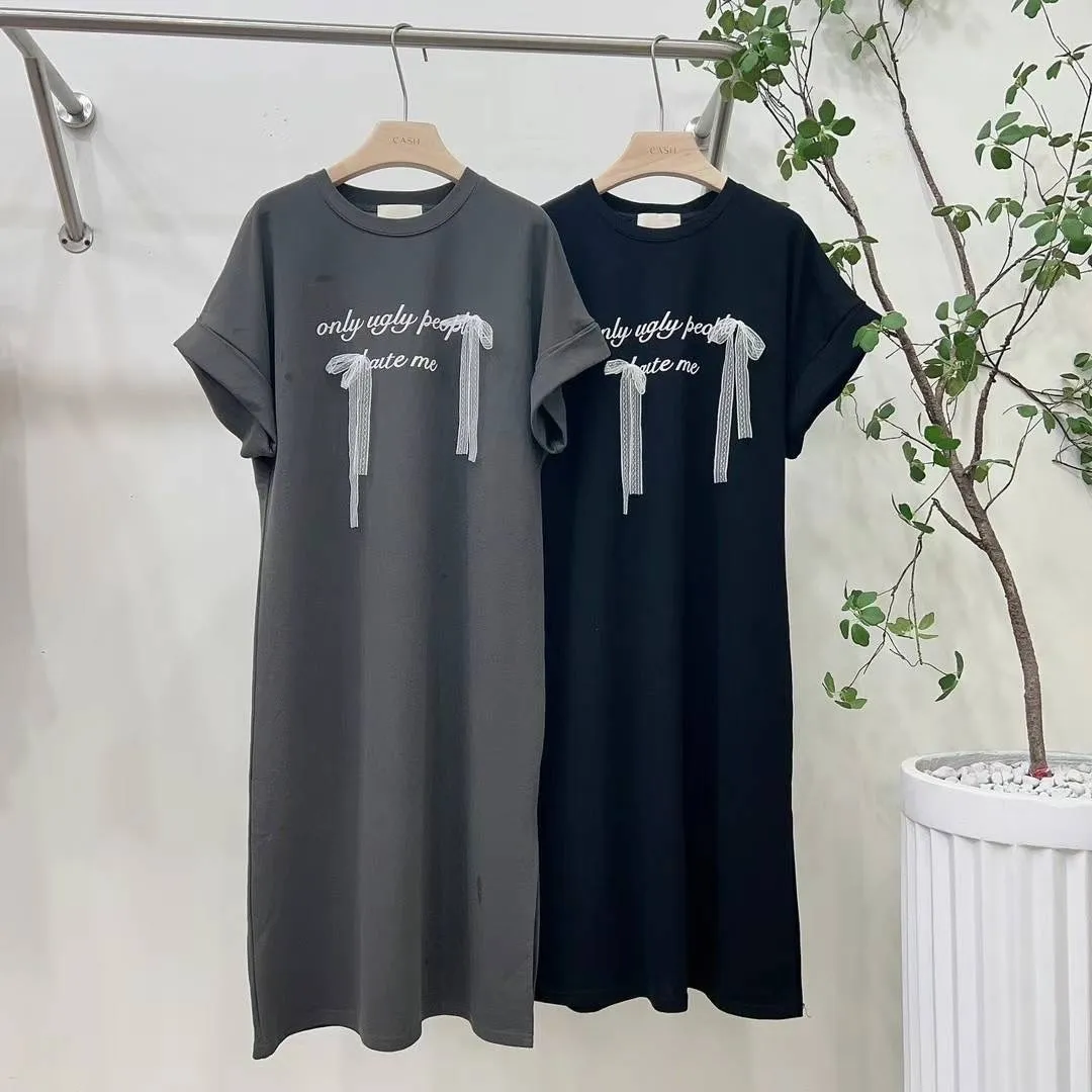 KM859蝴蝶結英文連身洋裝 墨 黑 官網價$929 線上價$899