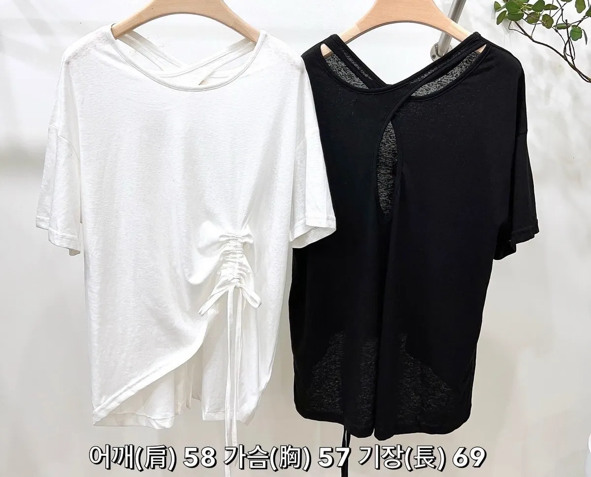 KM863推薦款薄薄側腰抽繩上衣 白 黑 官網價$529 線上價$499