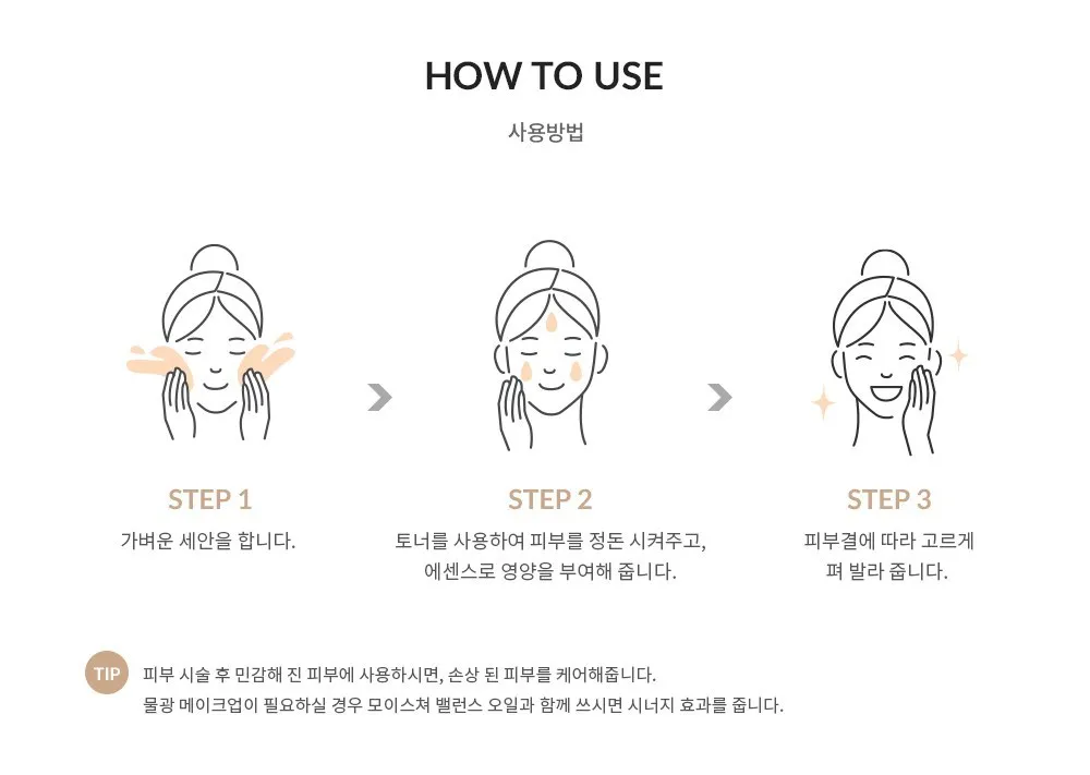 使用: 取適量輕拍全臉,在護膚程序的最後一步輕輕塗抹在皮膚上.