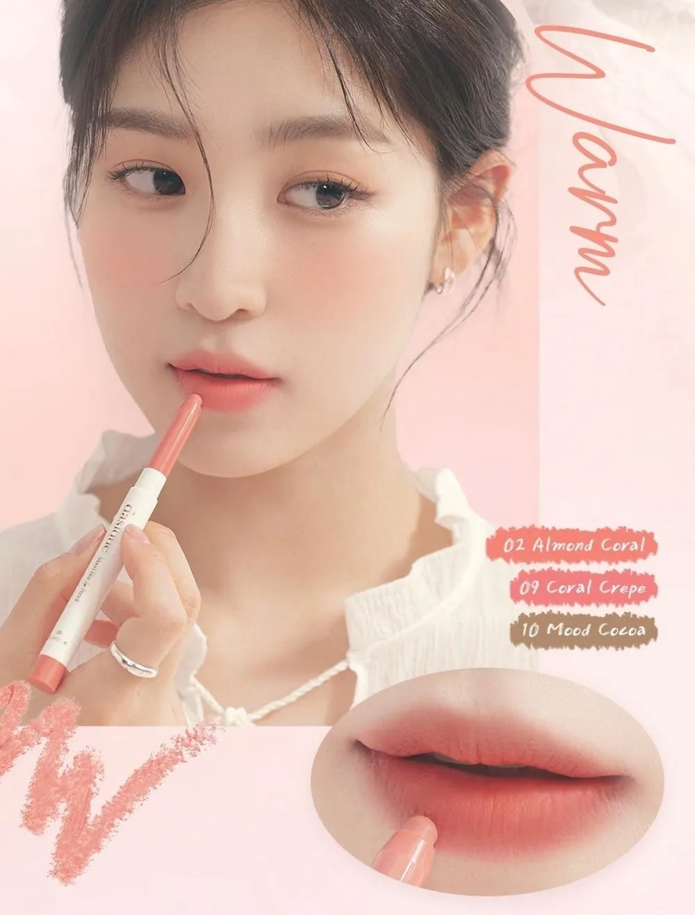 #08 Over Pink 柔霧煙粉(灰調基底色) #09 Coral Crepe 粉嫩珊瑚(暖調重點色)