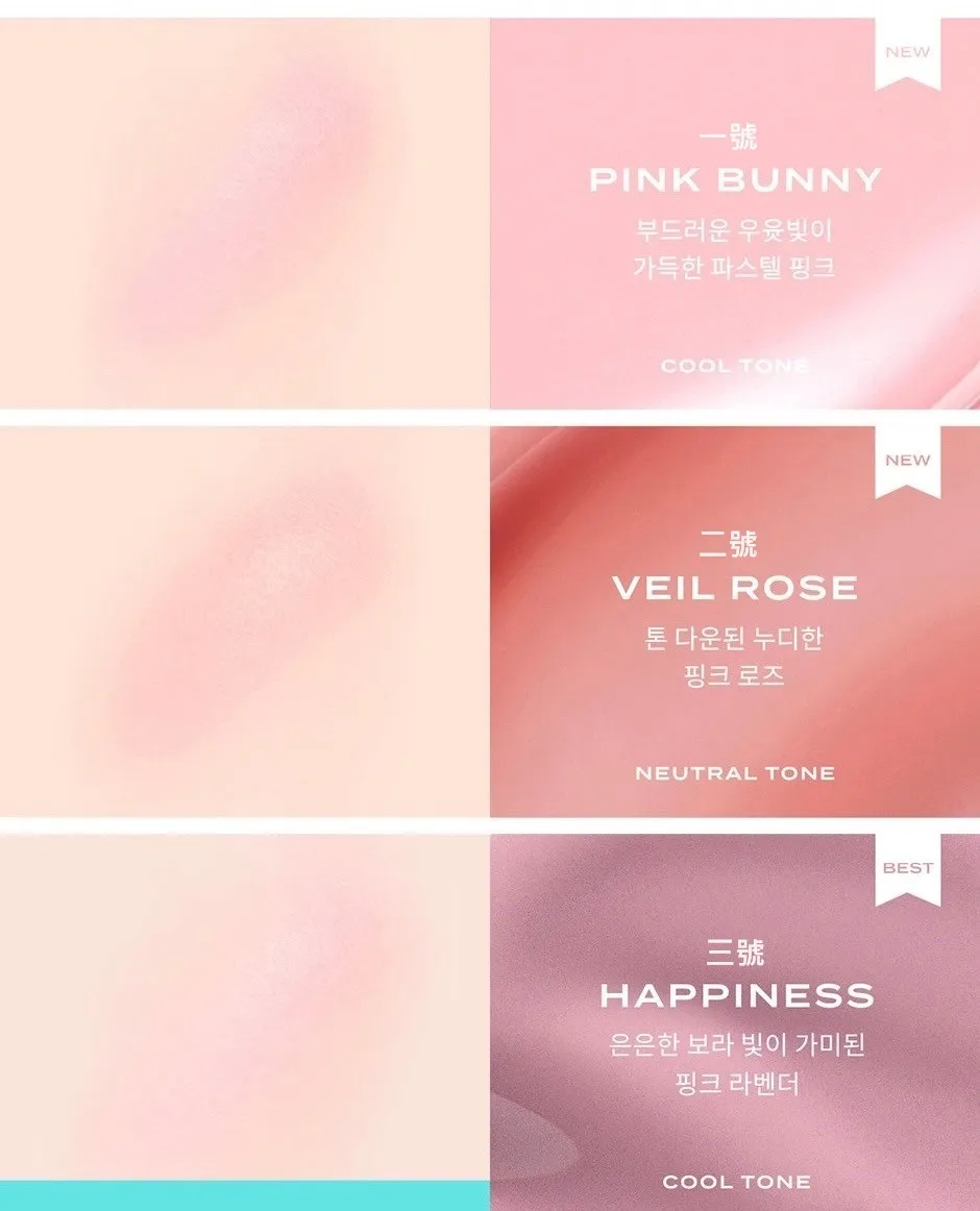 - 細緻貼合肌膚,均勻好推開,打造原生肌紅潤感