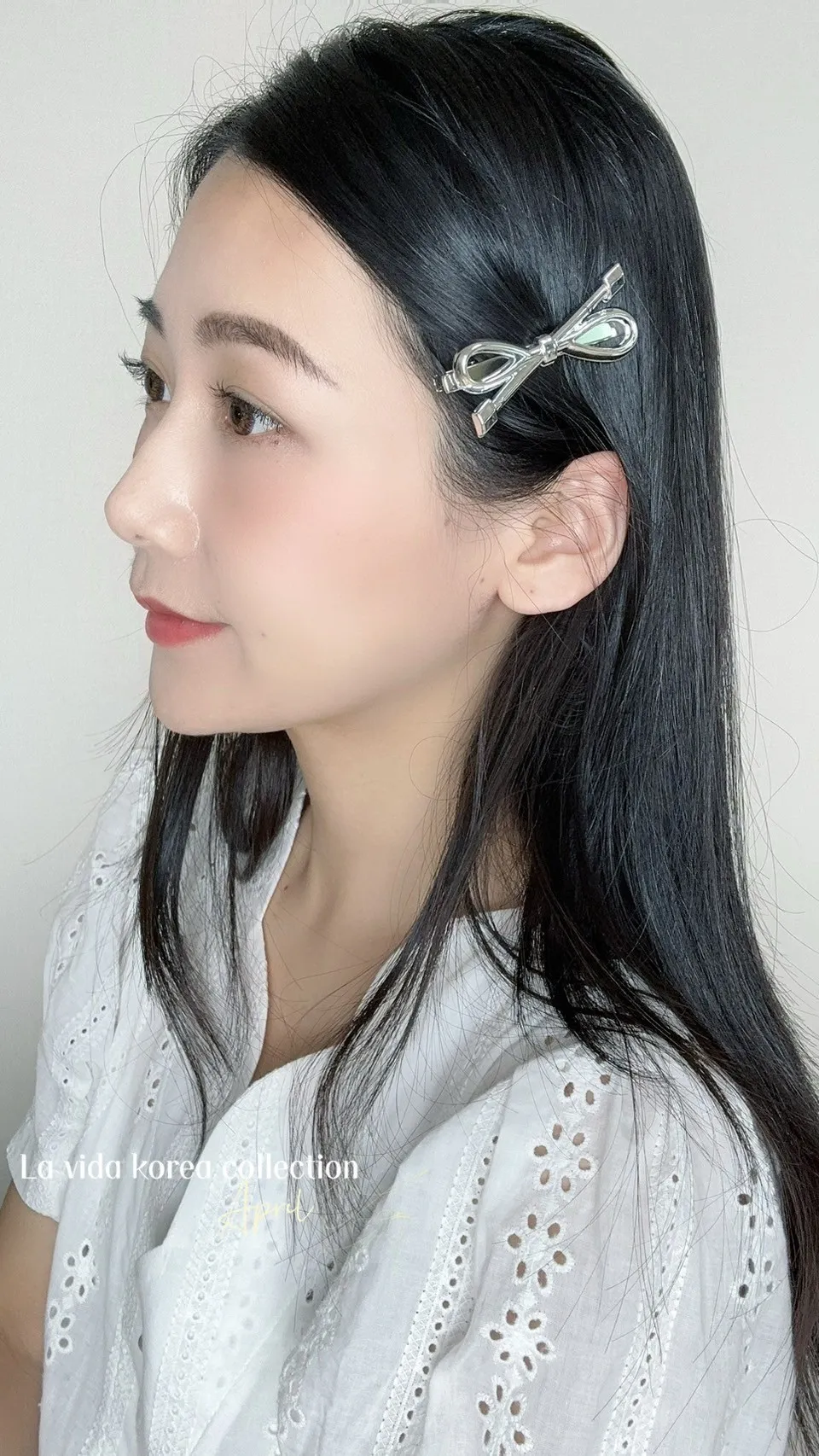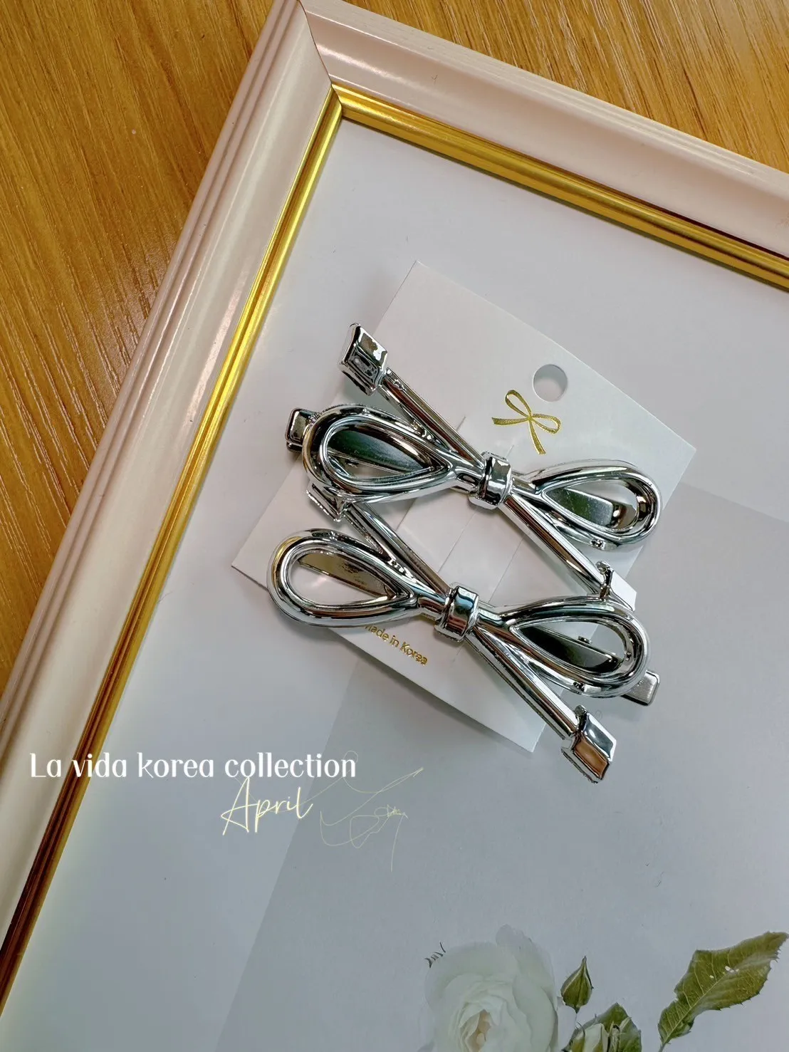 KM972回購款輕盈銀色蝴蝶結髮夾組(兩入)(原TA671)