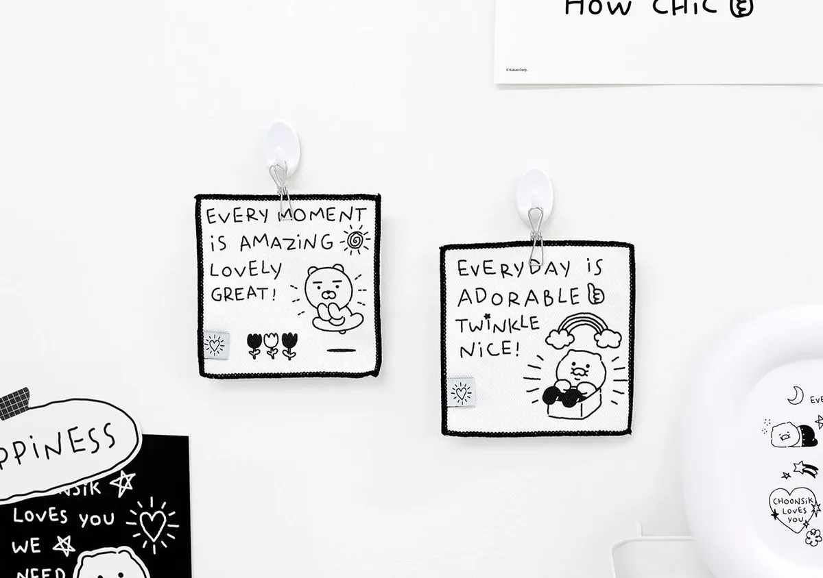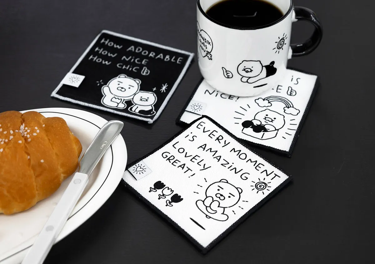 kakao029黑白極簡手繪萊恩&春植杯墊3入
