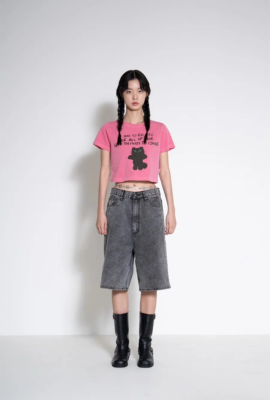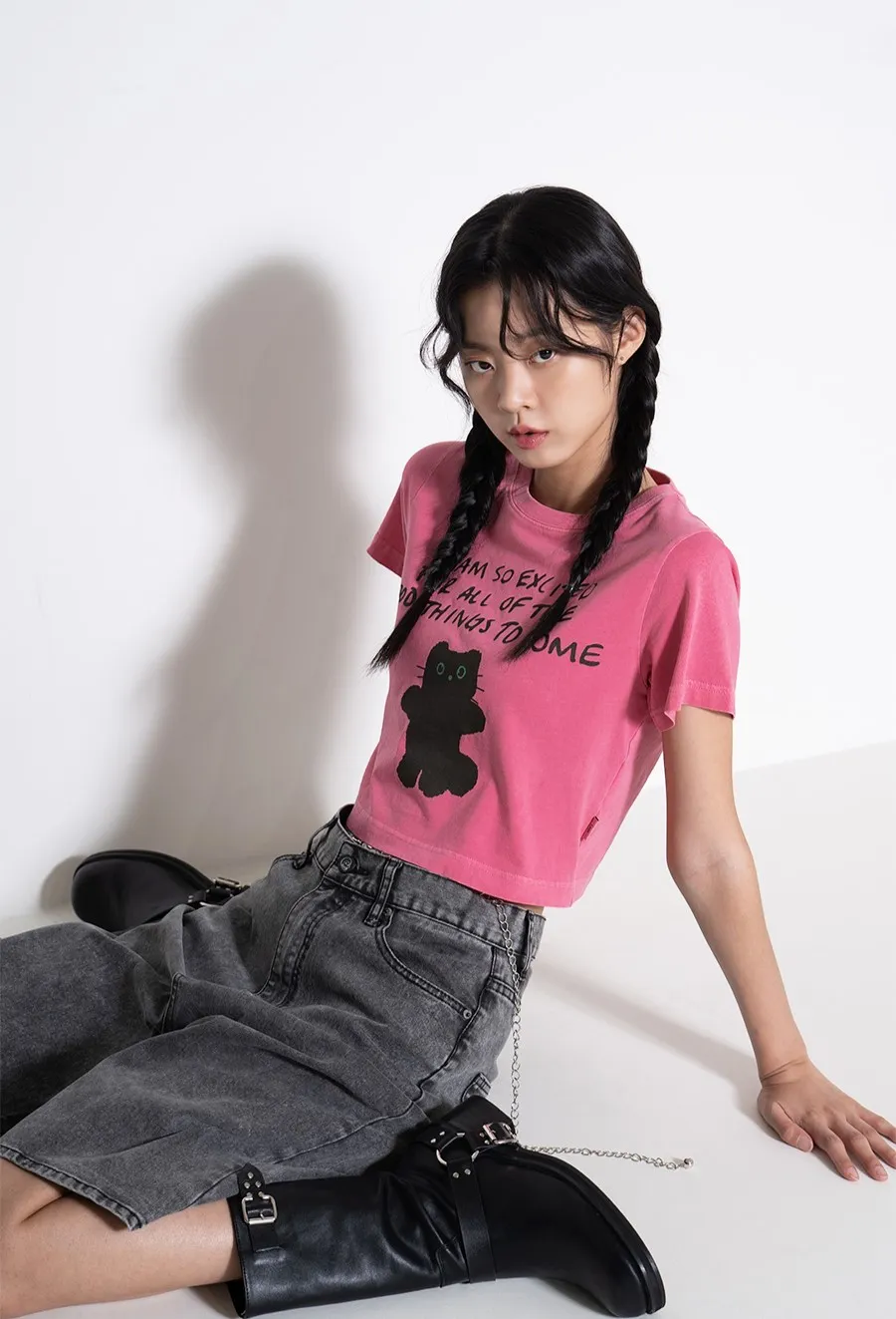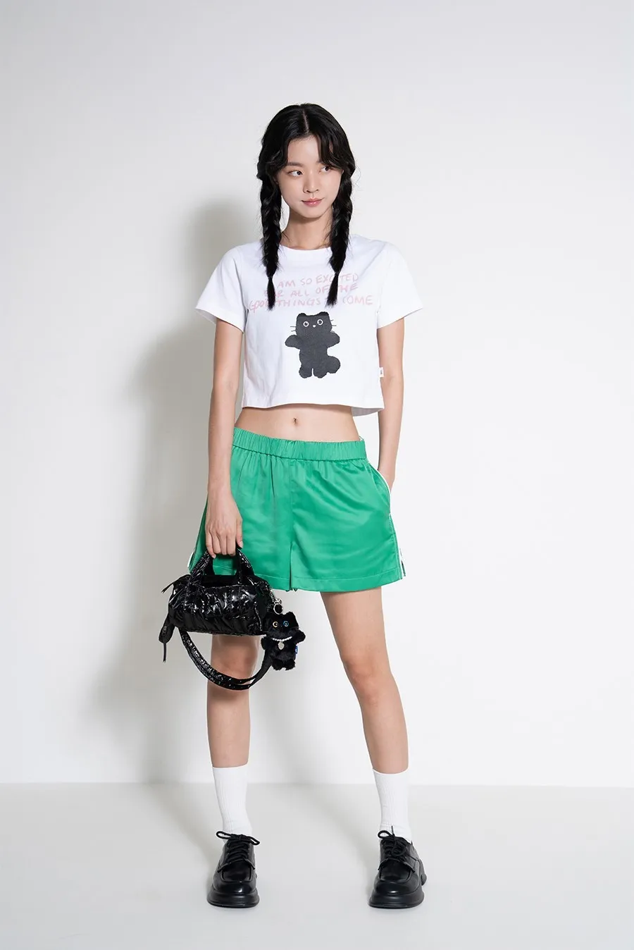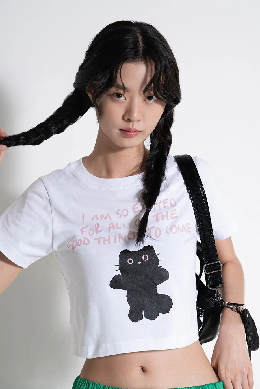 LMR007站立黑貓短版上衣 白 粉 原價$1880 特價$1580棉100%,適當厚度的20支棉面料,穿著舒適,不同顏色的配色增添亮點。以下粉色穿搭👇🏻 以下白色穿搭👇🏻 以下顏色,白色 以下顏色,粉色