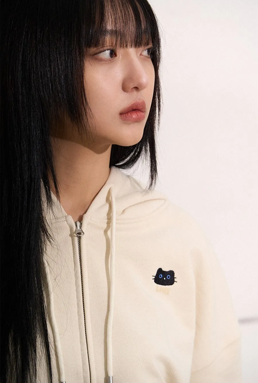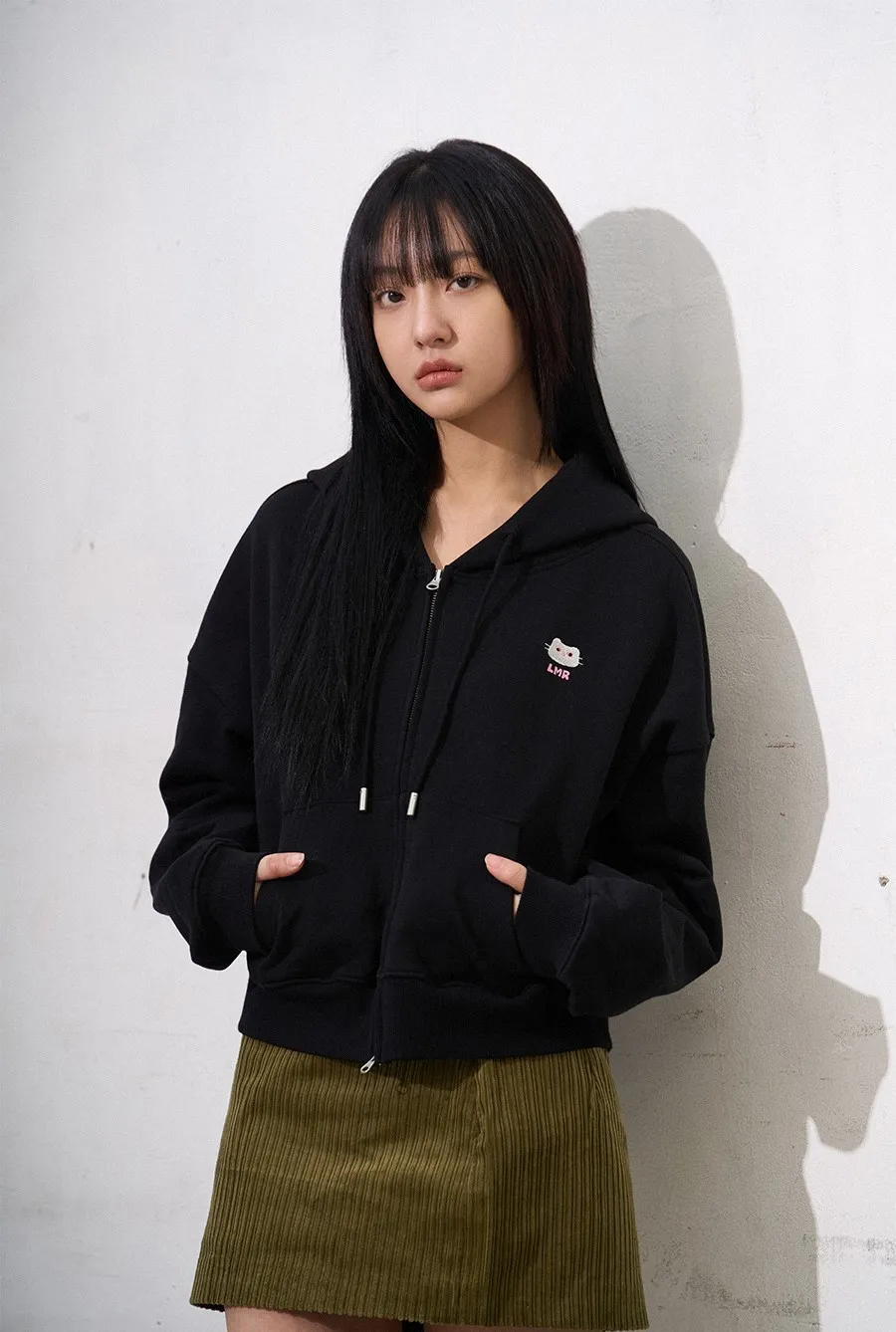 LMR008貓咪頭刺繡短版拉鍊外套 黑 灰 奶油 售價$2980正面貓刺繡和背面文字圖案印刷為亮點,柔軟輕便穿著感,展現俏皮風風格。適當厚度,是春季到東西都可日常穿著的單品。尺寸(cm),肩寬49胸寬70袖長53全長49以下黑色穿搭👇🏻 以下奶油色穿搭👇🏻 以下顏色,灰色 以下顏色,黑色 以下顏色,奶油色