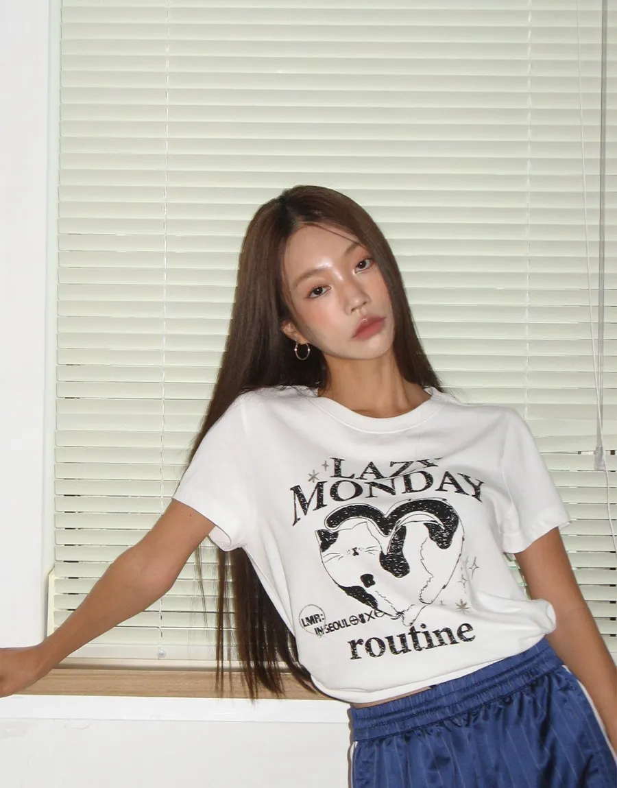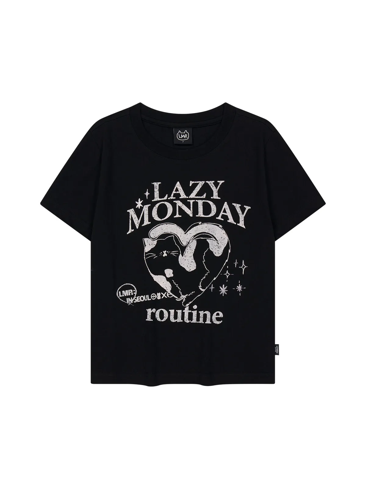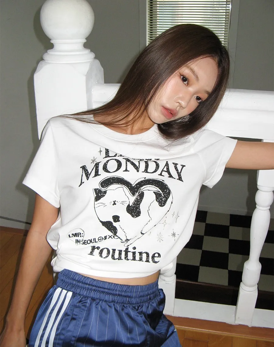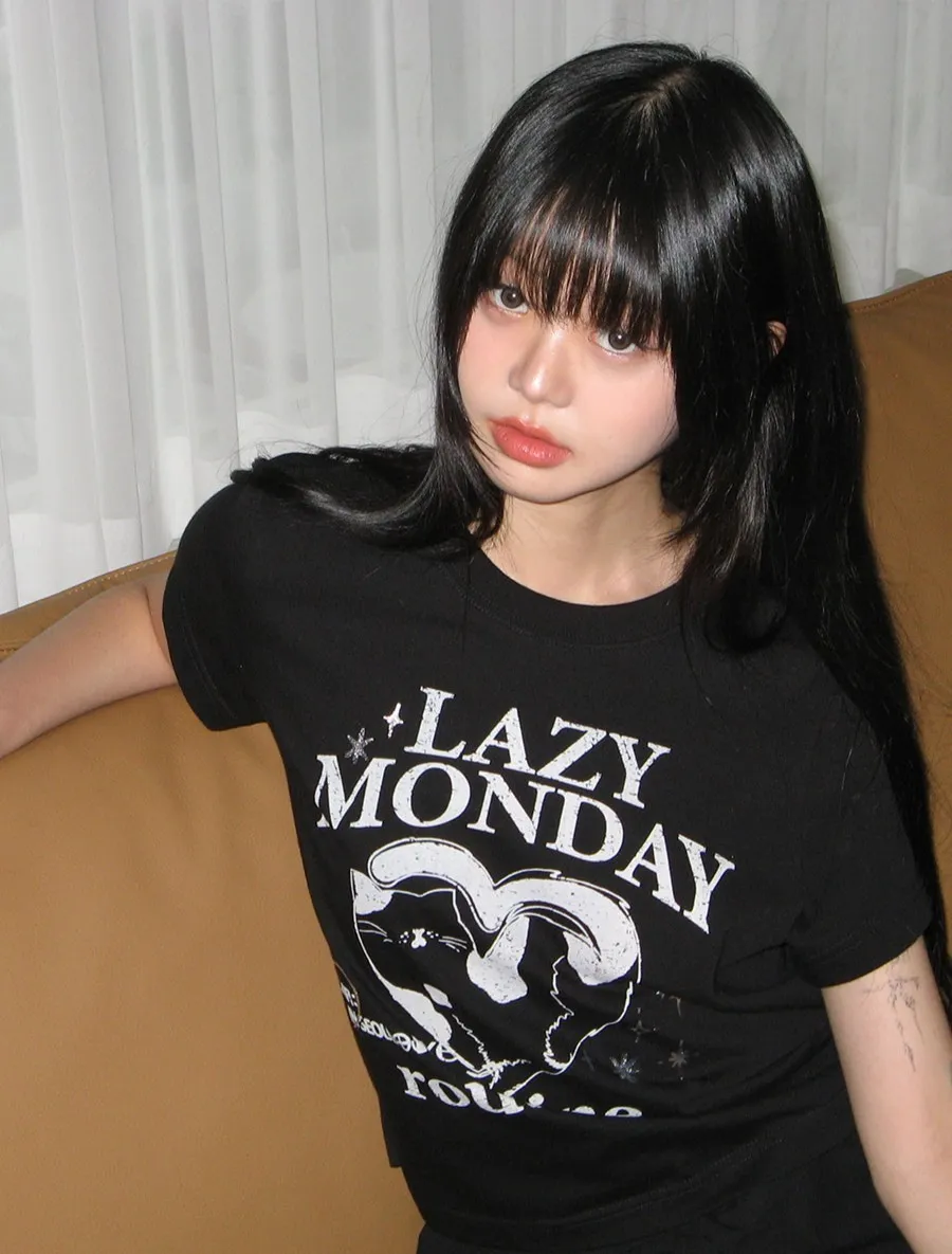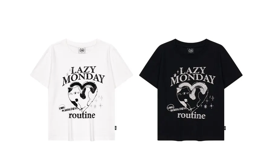 LMR019 LAZY MONDAY心型貓咪Tshirt 黑 米 售價$990100%棉尺寸(cm)總長51 肩寬38.5 胸寬47.5 袖長16.5 下擺49以下為黑色穿搭👇🏻 以下為米色穿搭👇🏻 以下顏色,米>黑