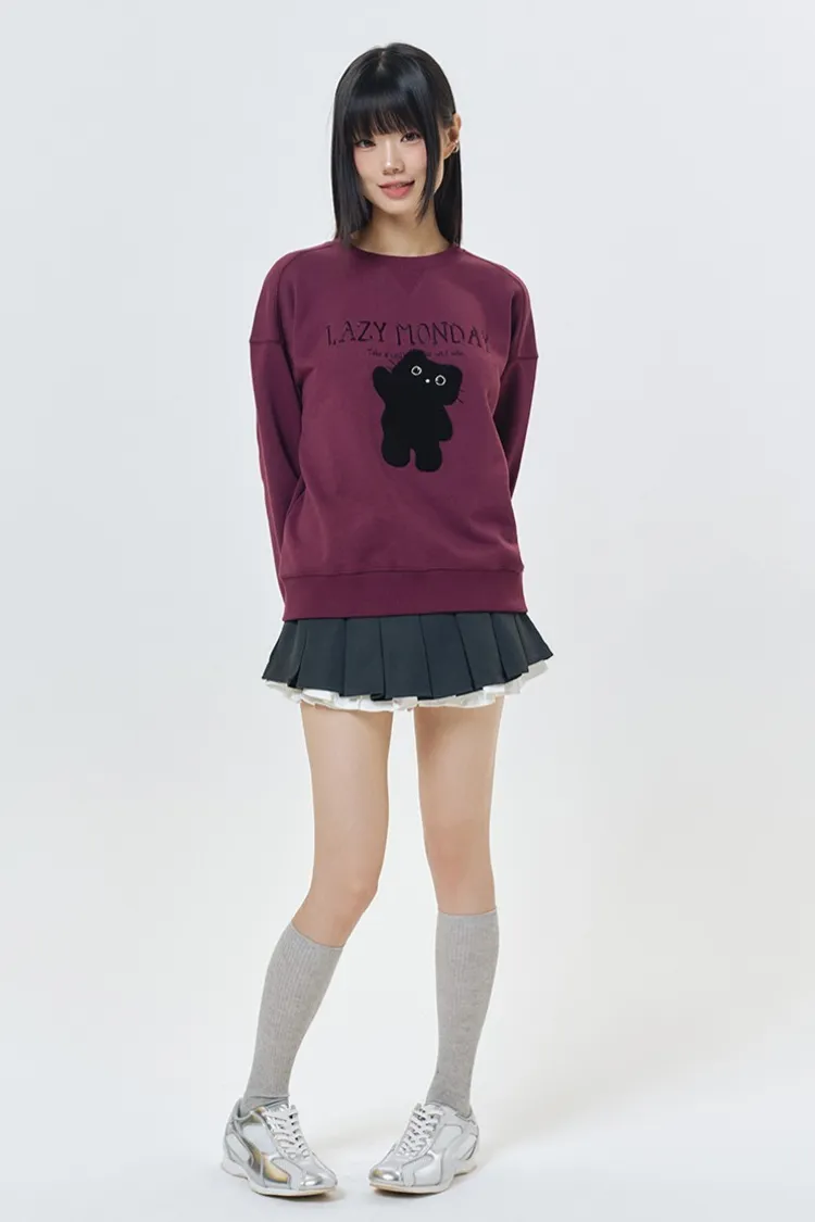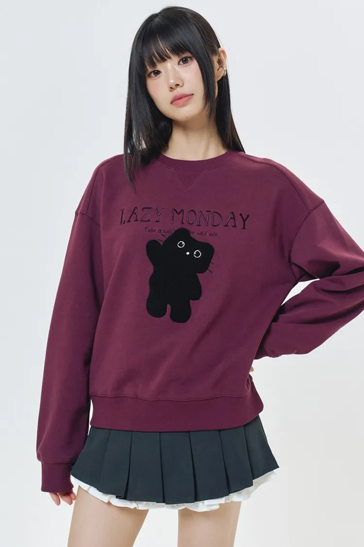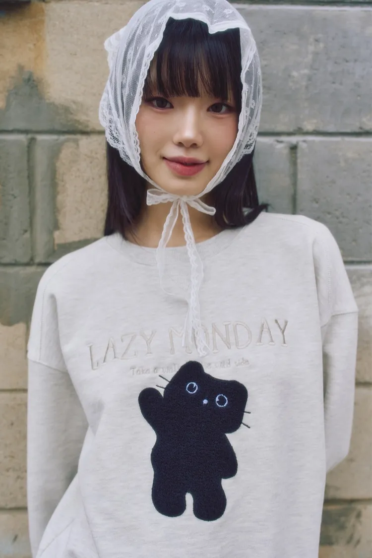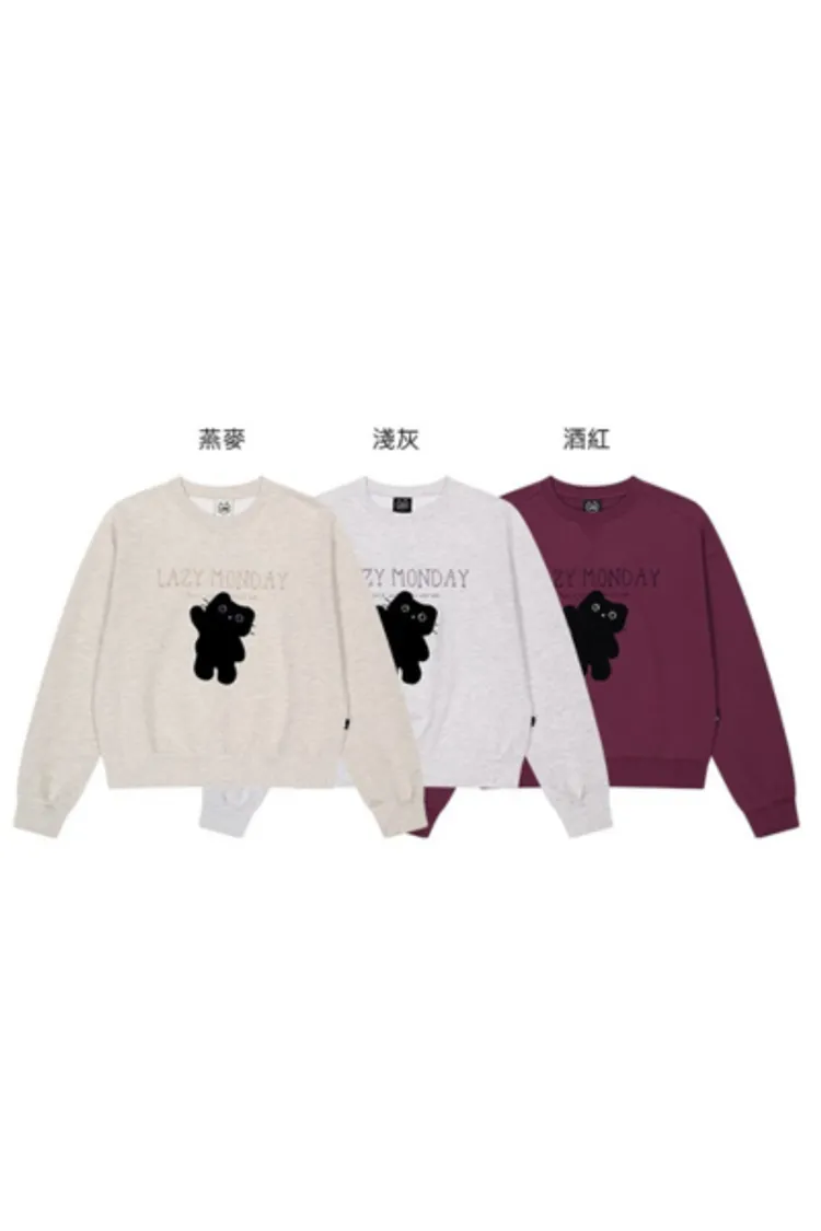棉+聚酯 無刷毛 台灣天氣合適 絨毛貓貓 英文lazy monday