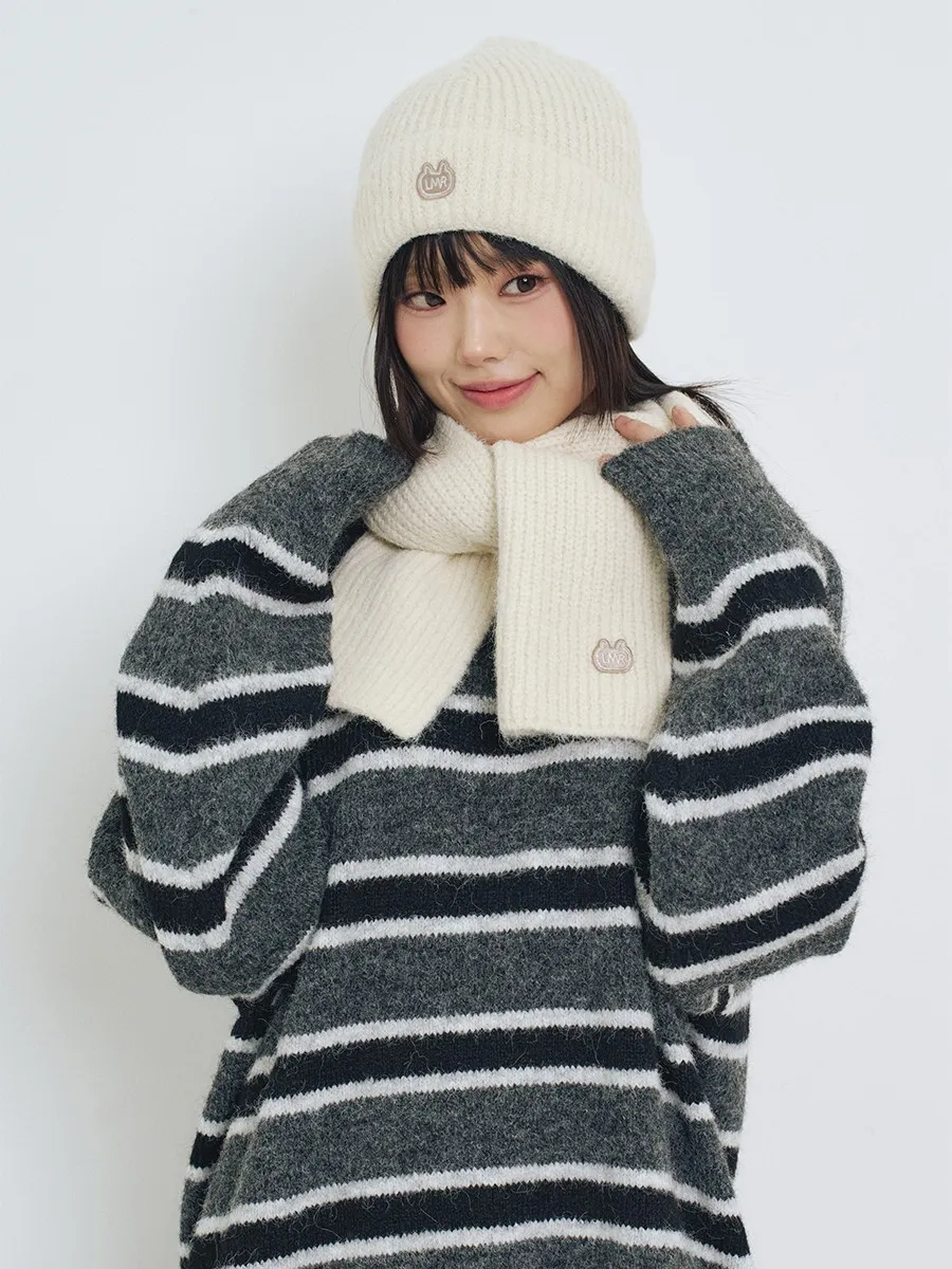 羊毛8%+聚酯+尼龍+彈力,20*200公分,貓貓圖案小標