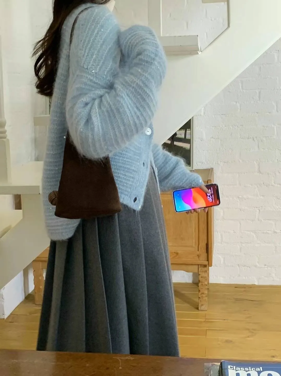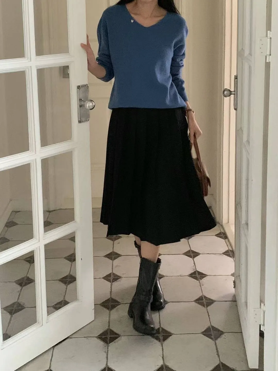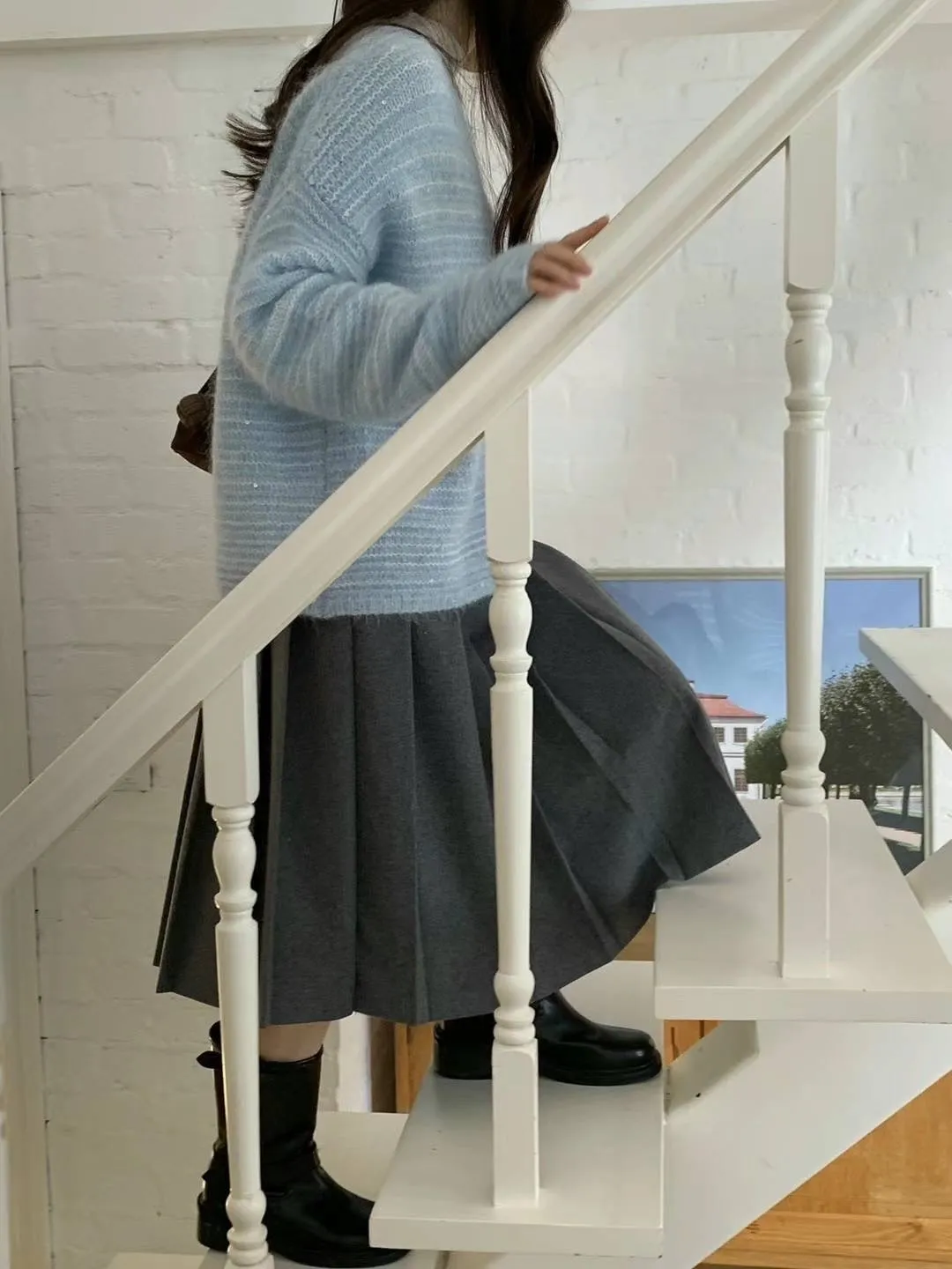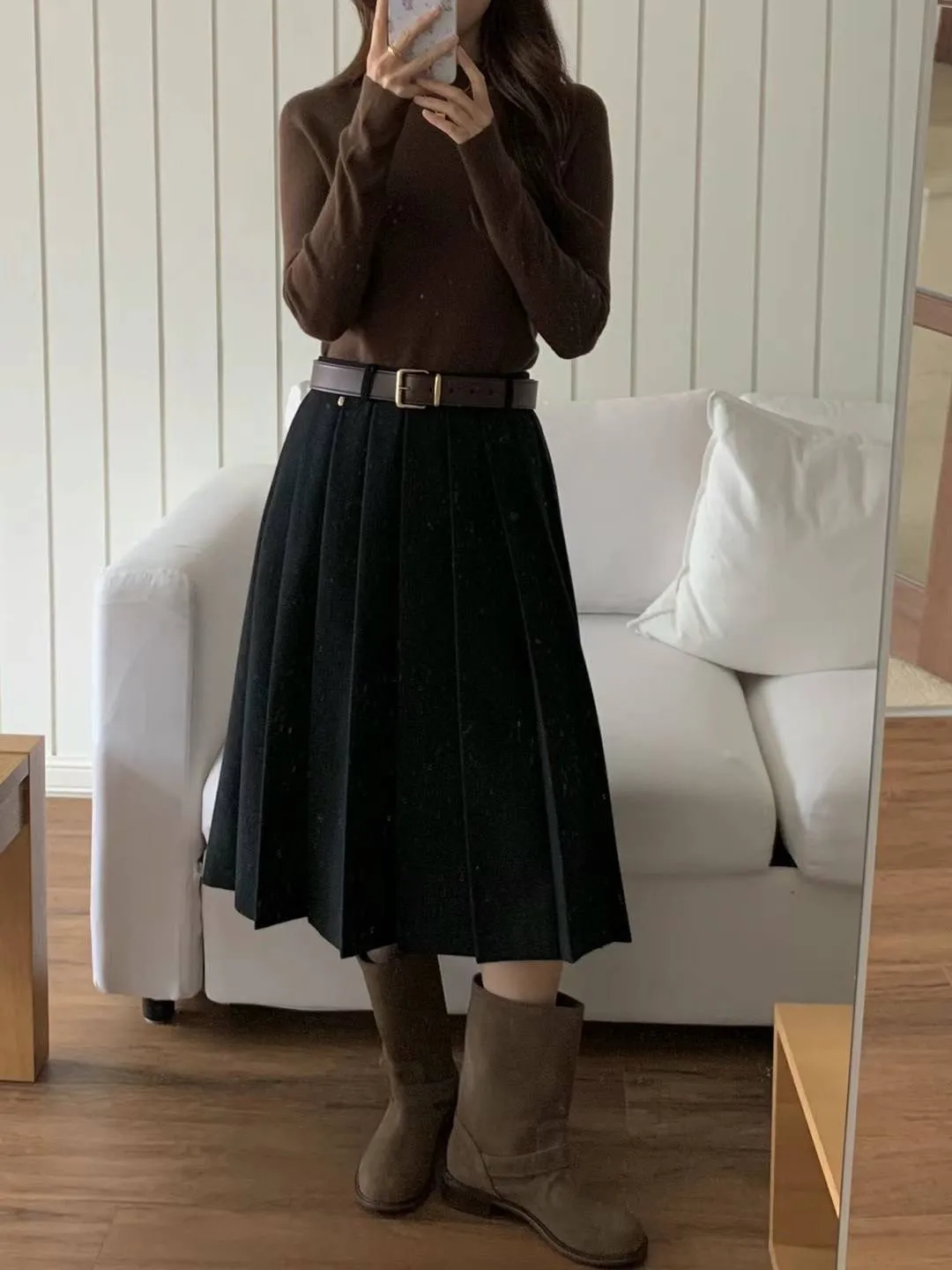 LV095質感百折羊毛裙 灰 黑 S M 官網價$1170 線上價$1140
