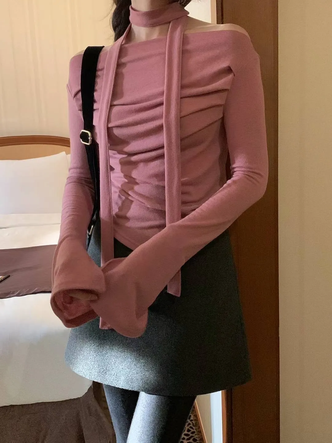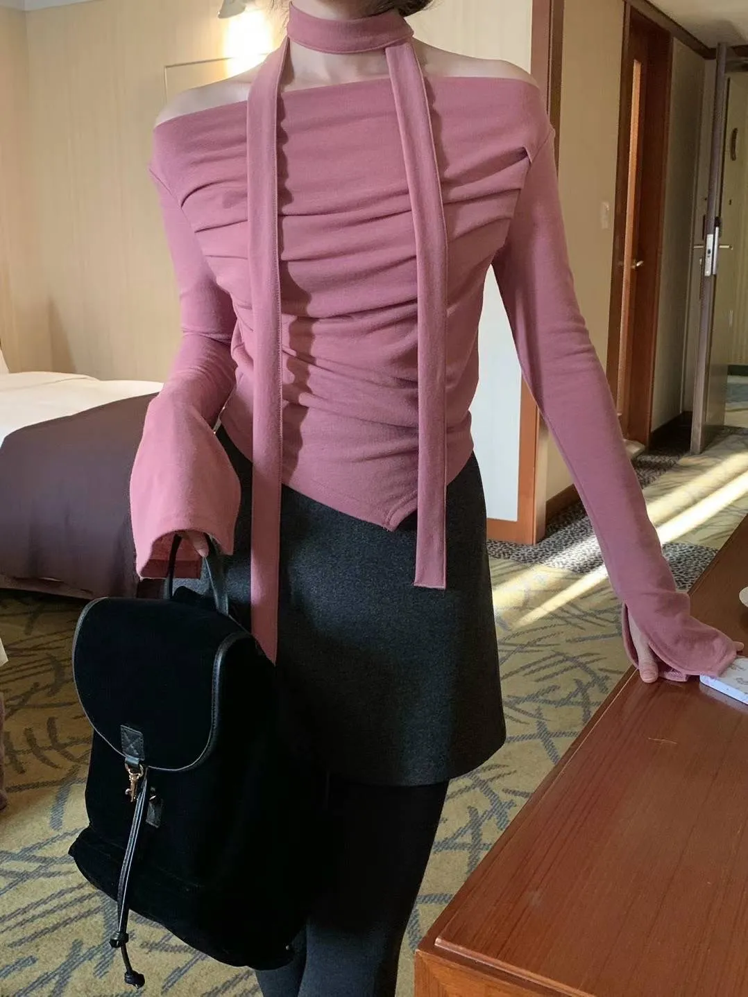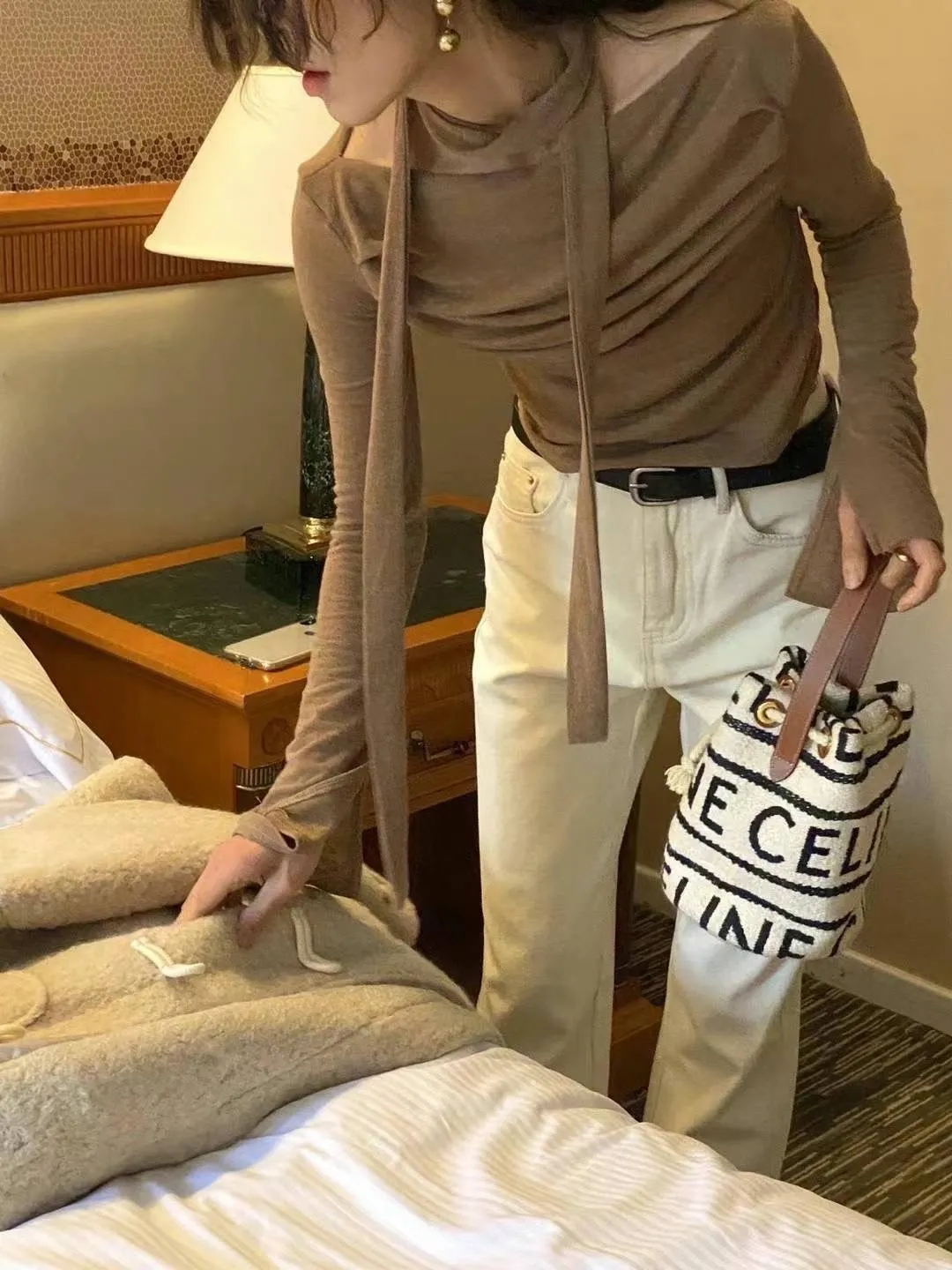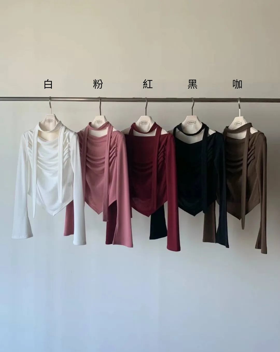 LV098質感女神垂墜上衣(附綁帶) 白 紅 粉 咖 黑 官網價$720 線上價$690