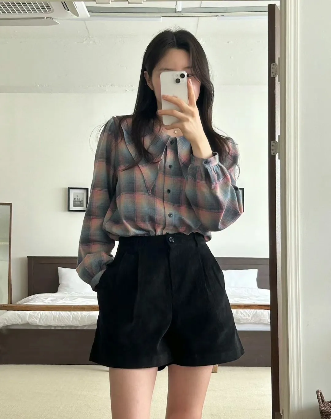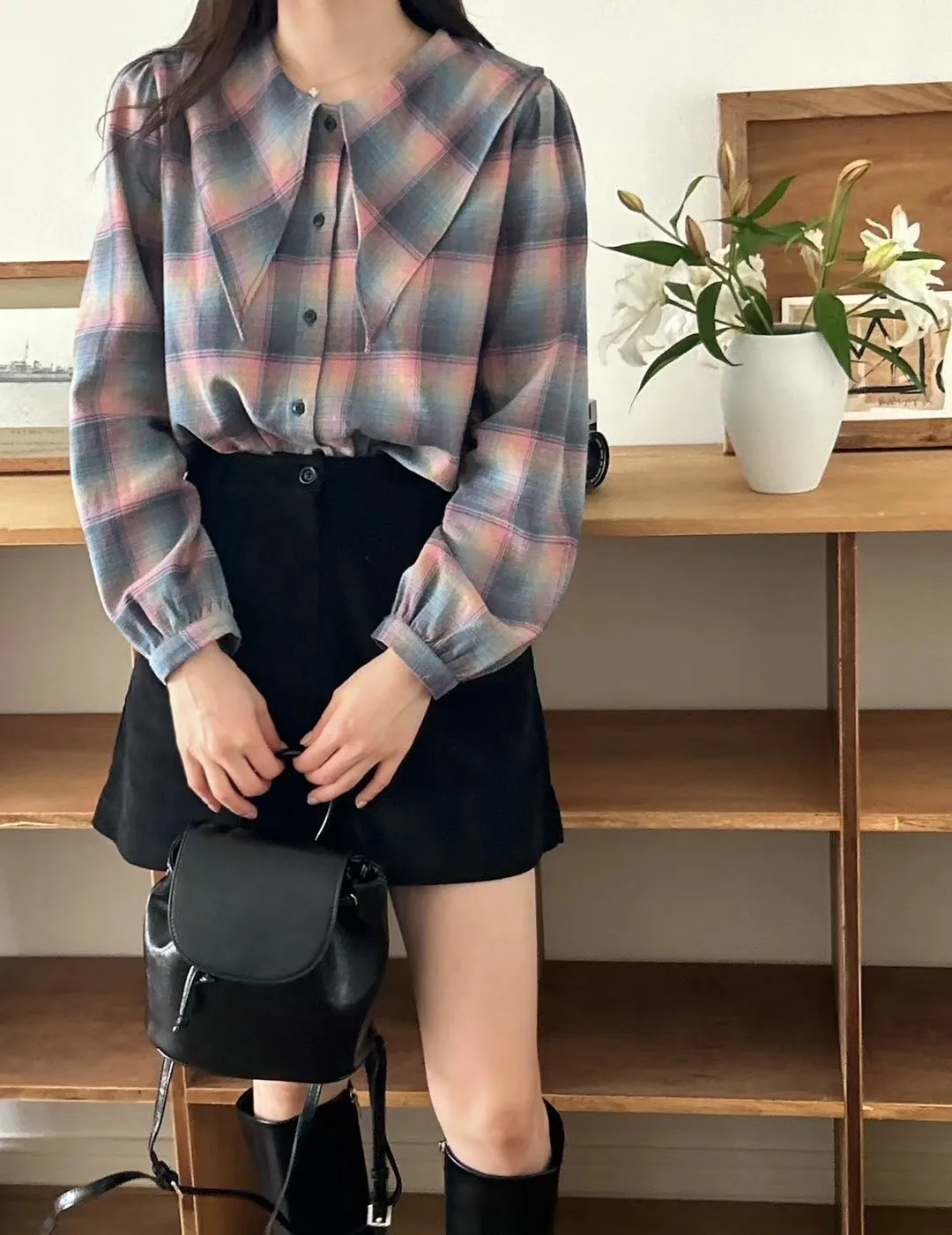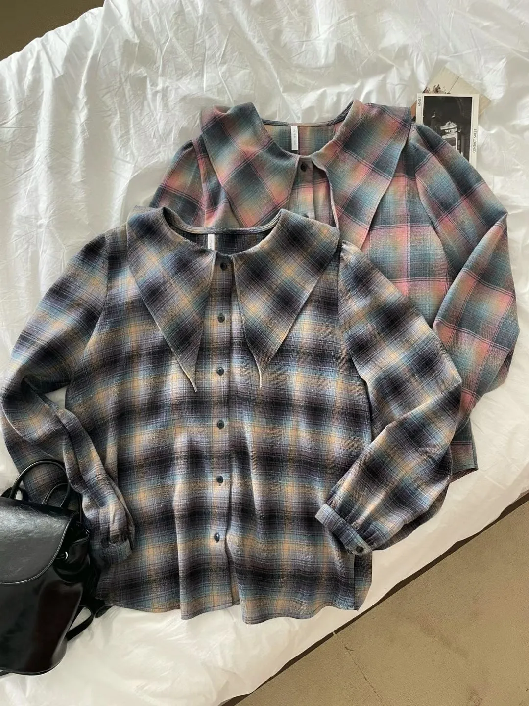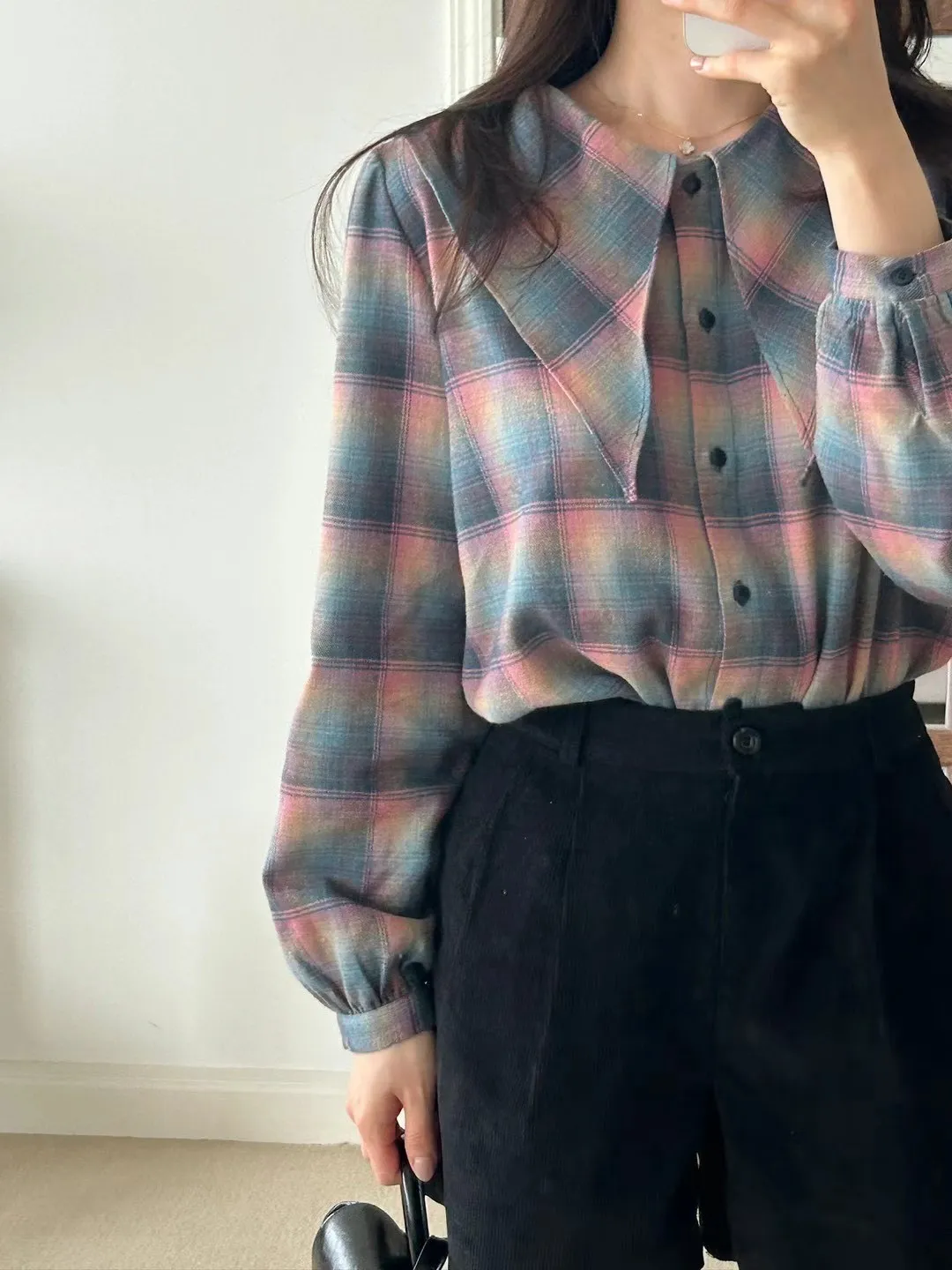 LV1012夢幻格紋翻領上衣 藍 粉 官網價$750 永恆甜甜價$720