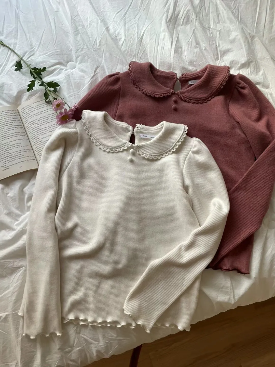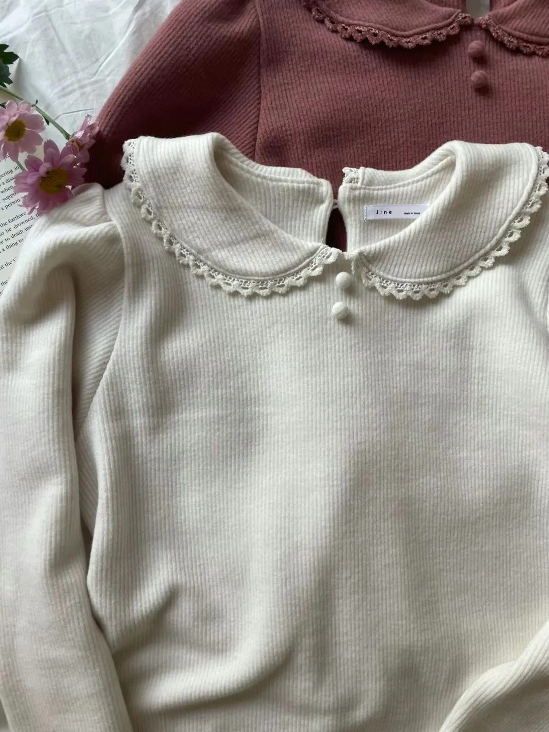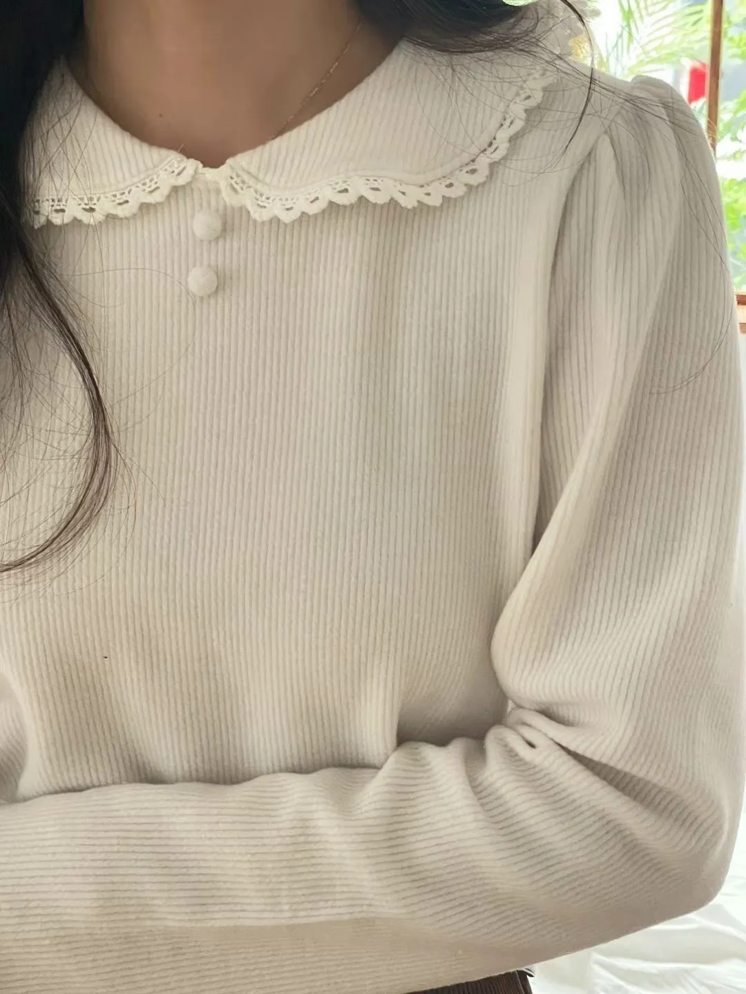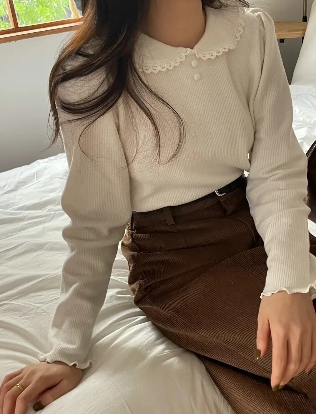 棉 氣質蕾絲滾邊翻領 木耳手袖 有彈性