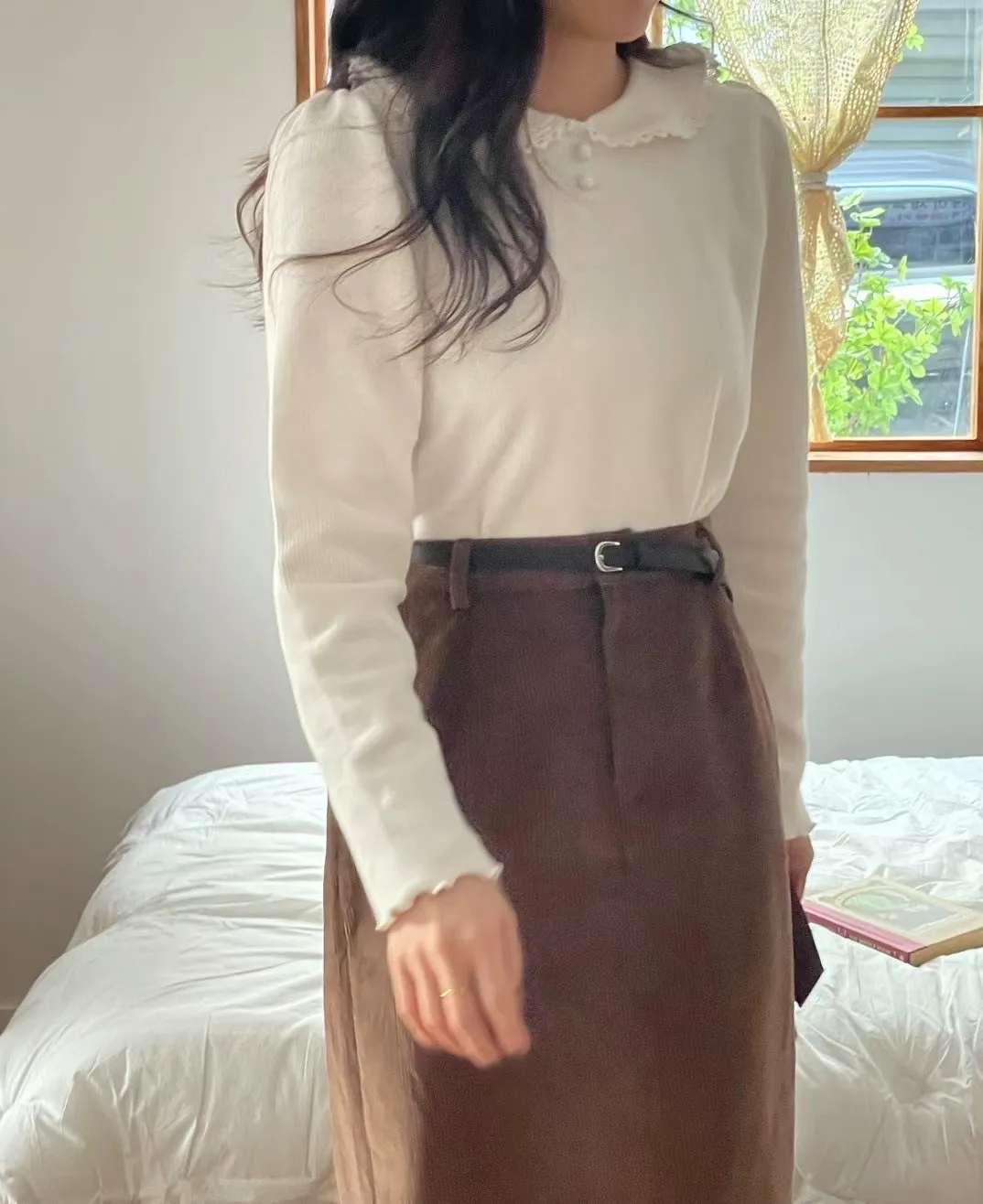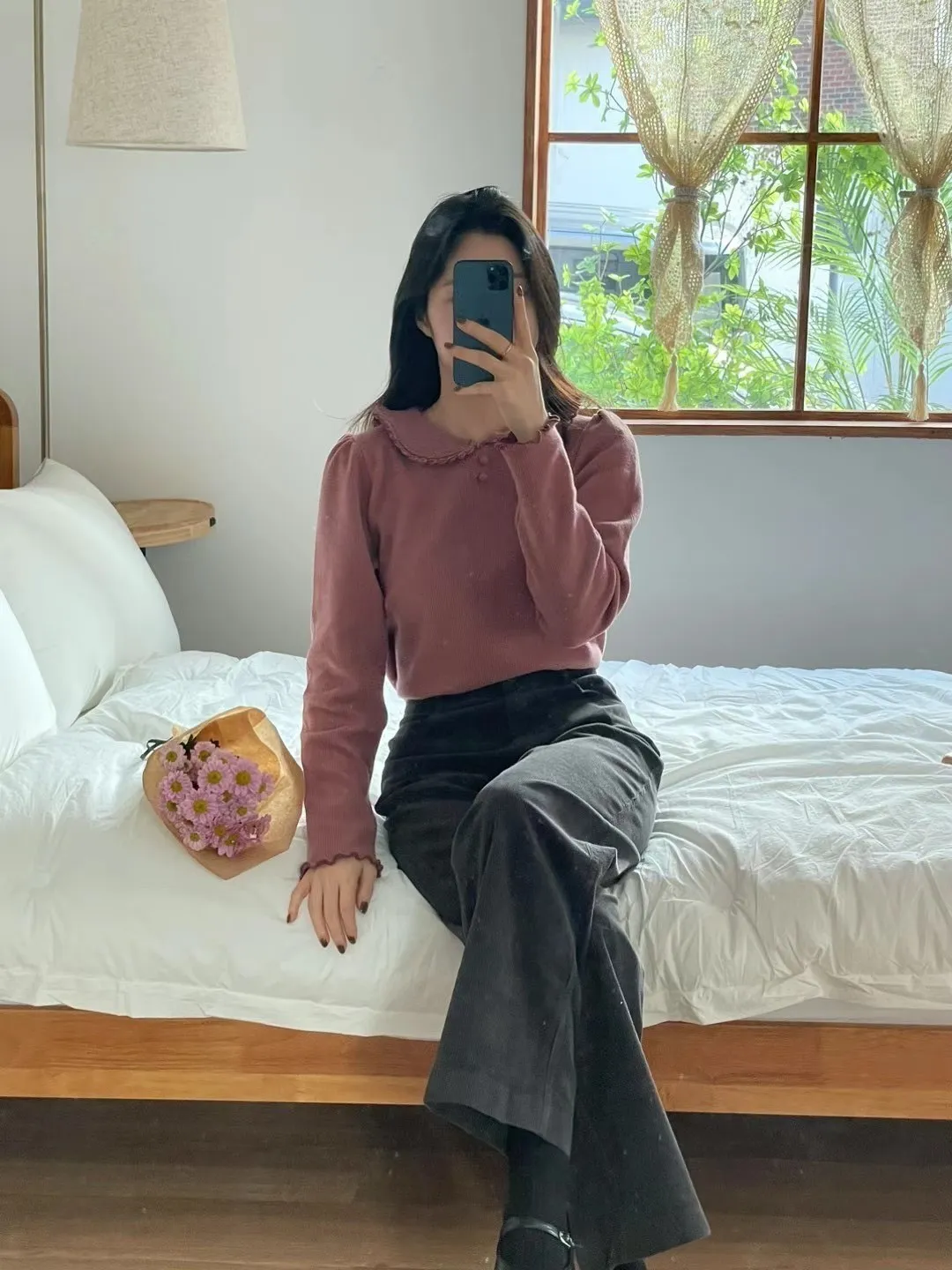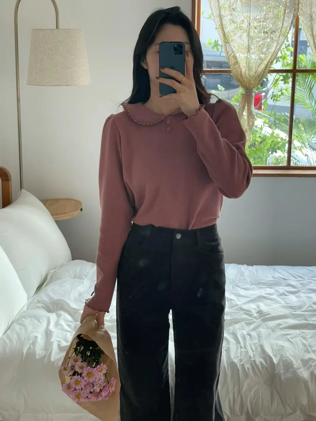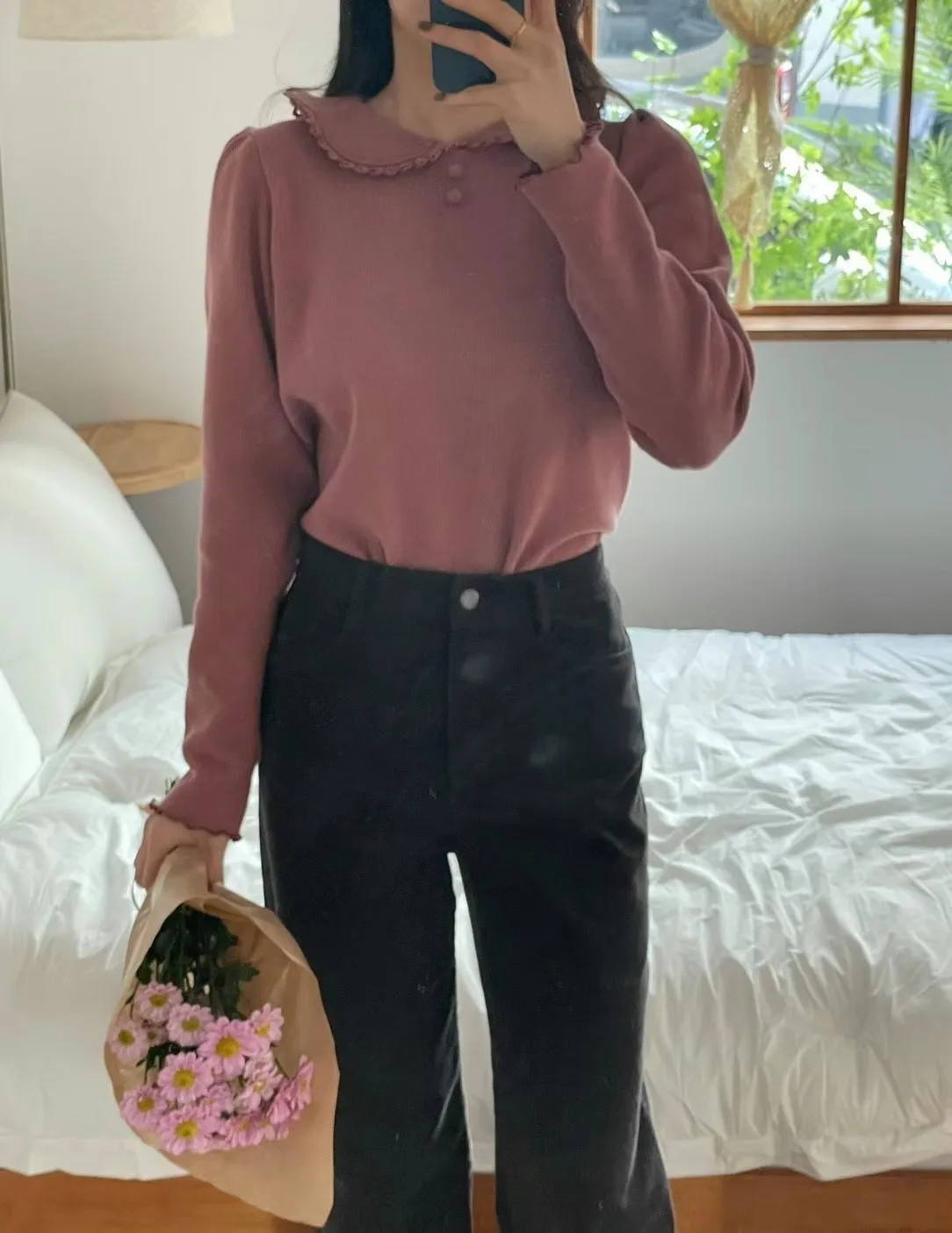棉 氣質蕾絲滾邊翻領 木耳手袖 有彈性