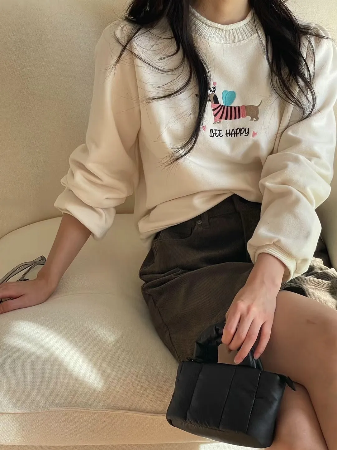 LV1014可愛蜜蜂臘腸狗happy大學T 米 咖 官網價$799 永恆甜甜價$769