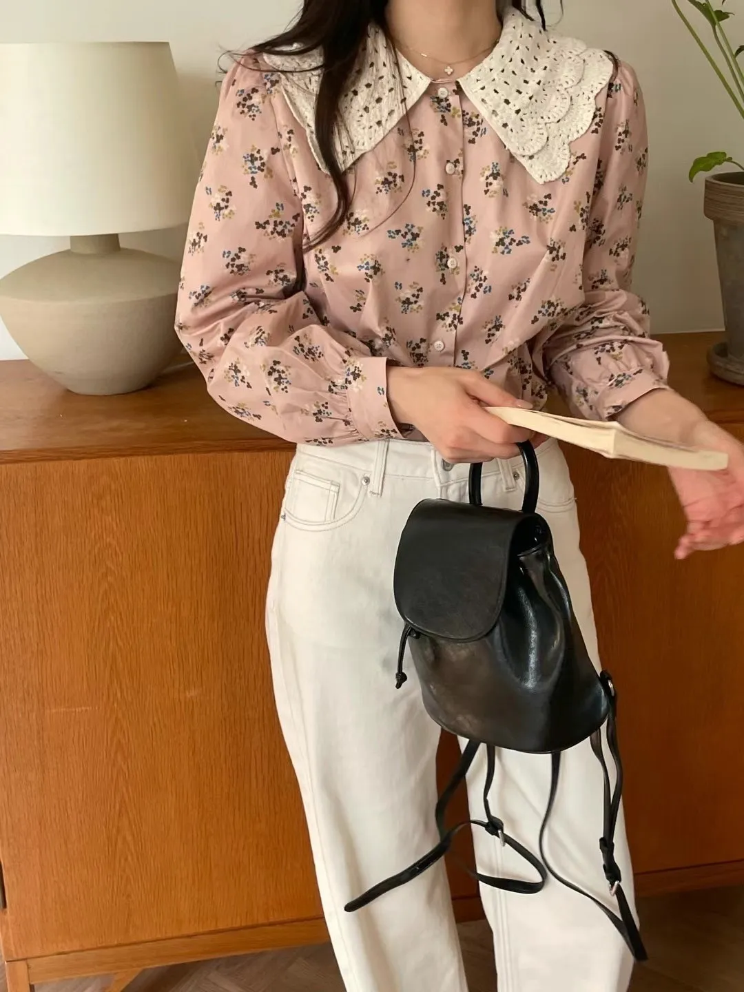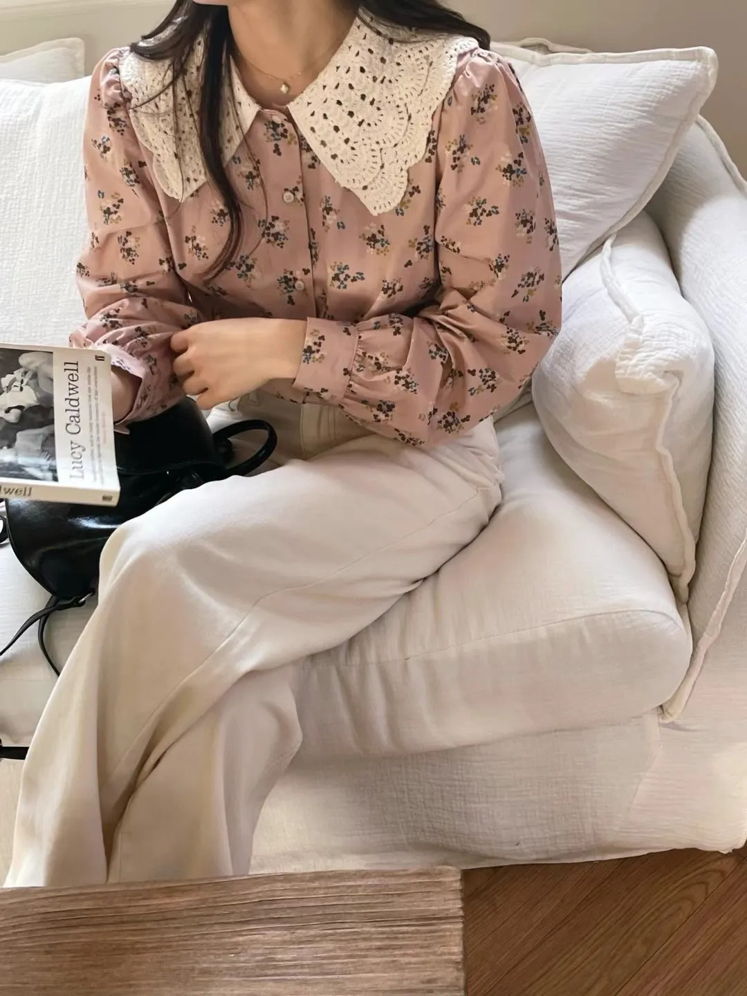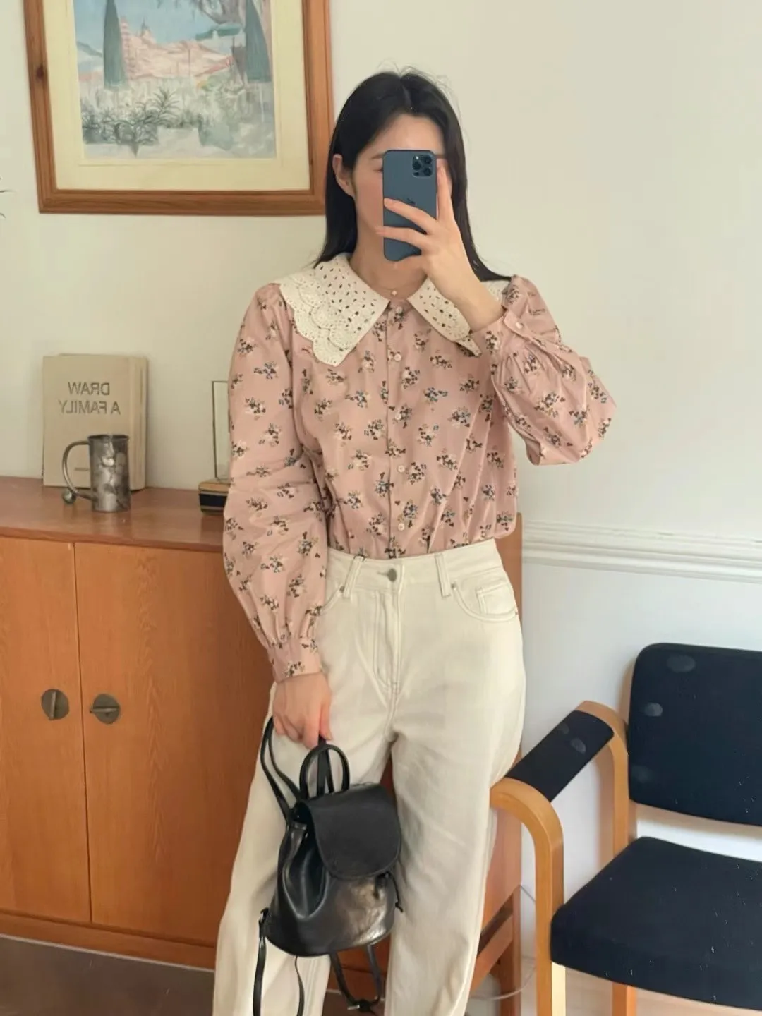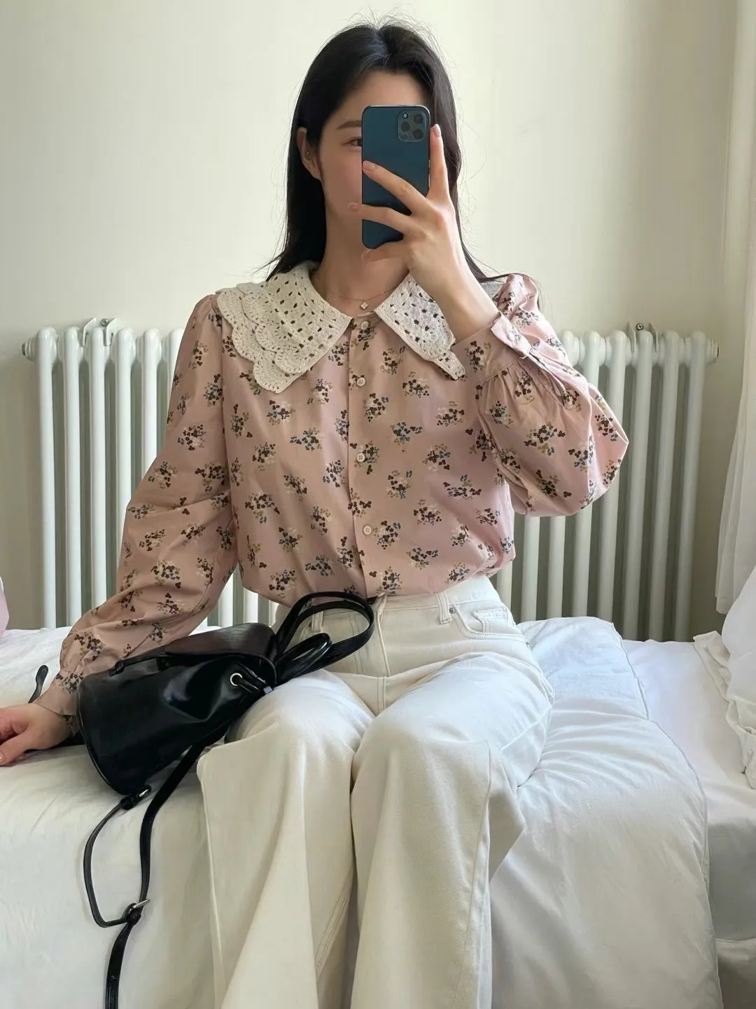 LV1015雙層布蕾絲翻領碎花上衣 官網價$890 永恆甜甜價$860