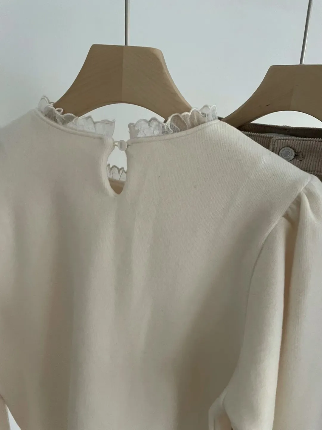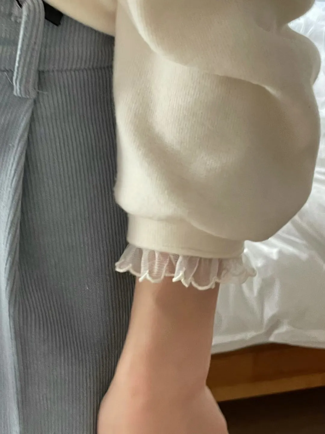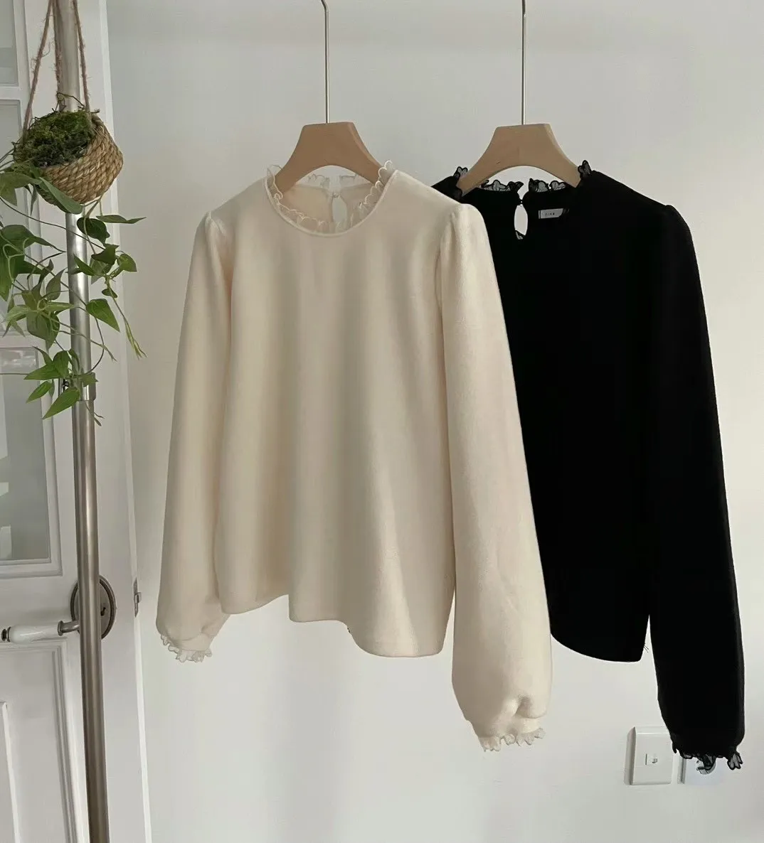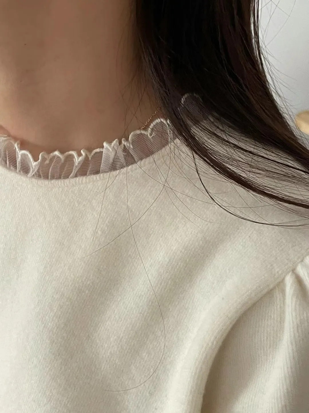 LV1017網紗透光木耳滾邊上衣 米 黑 官網價$750 永恆甜甜價$720