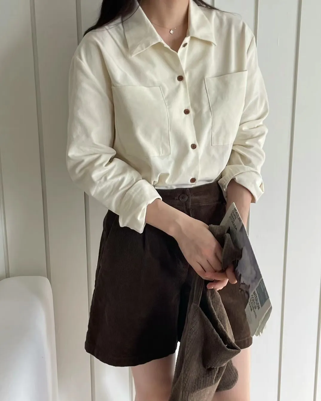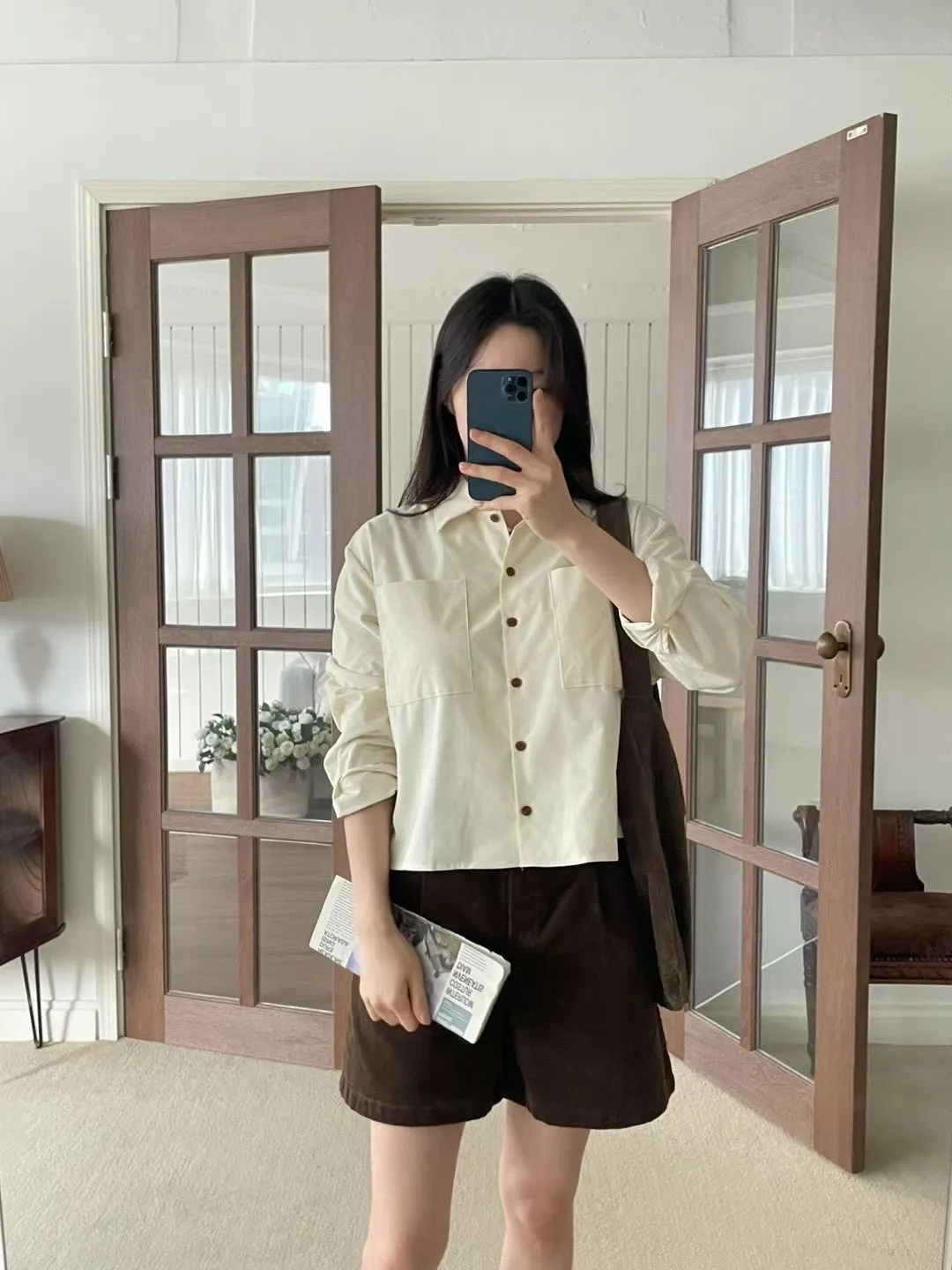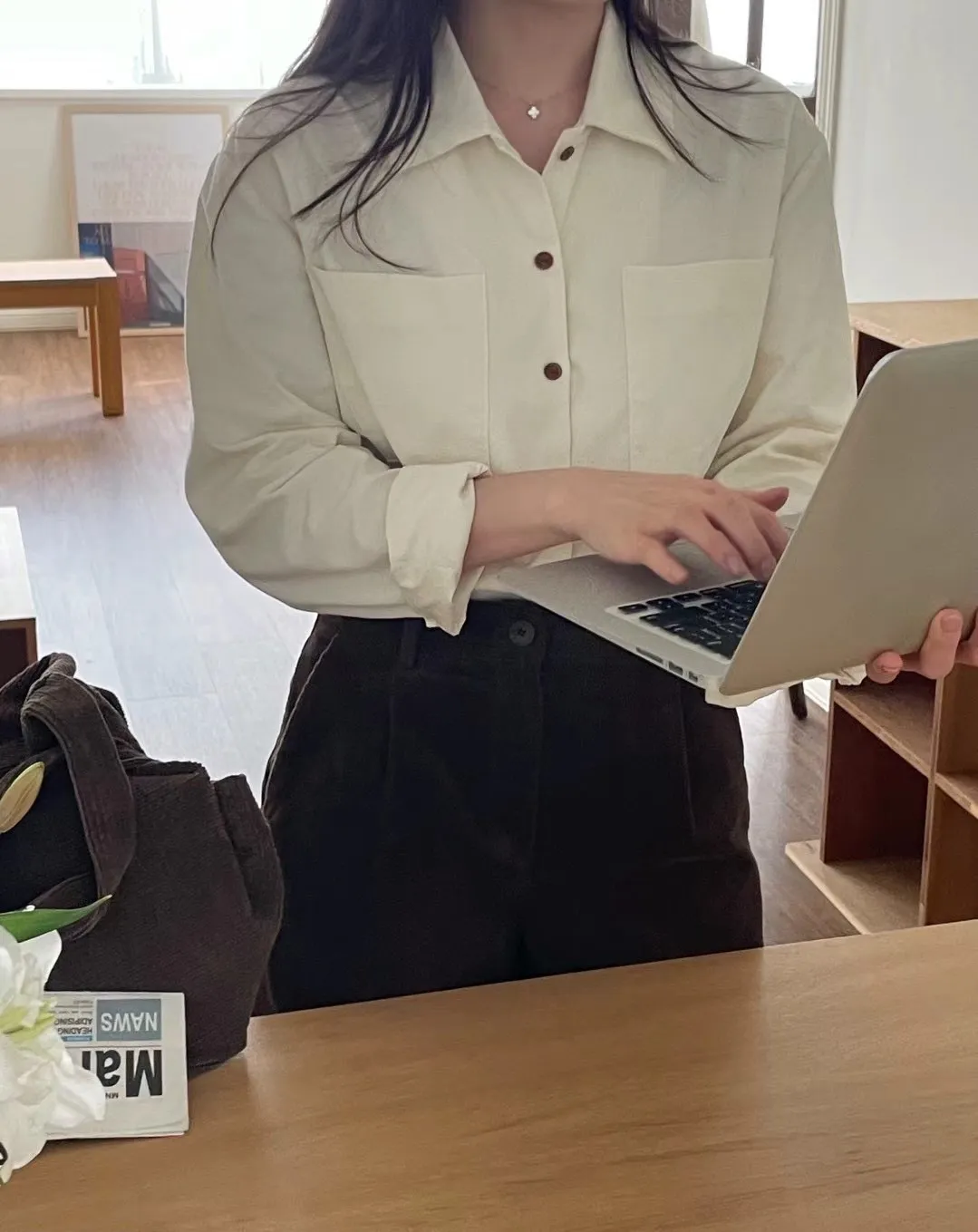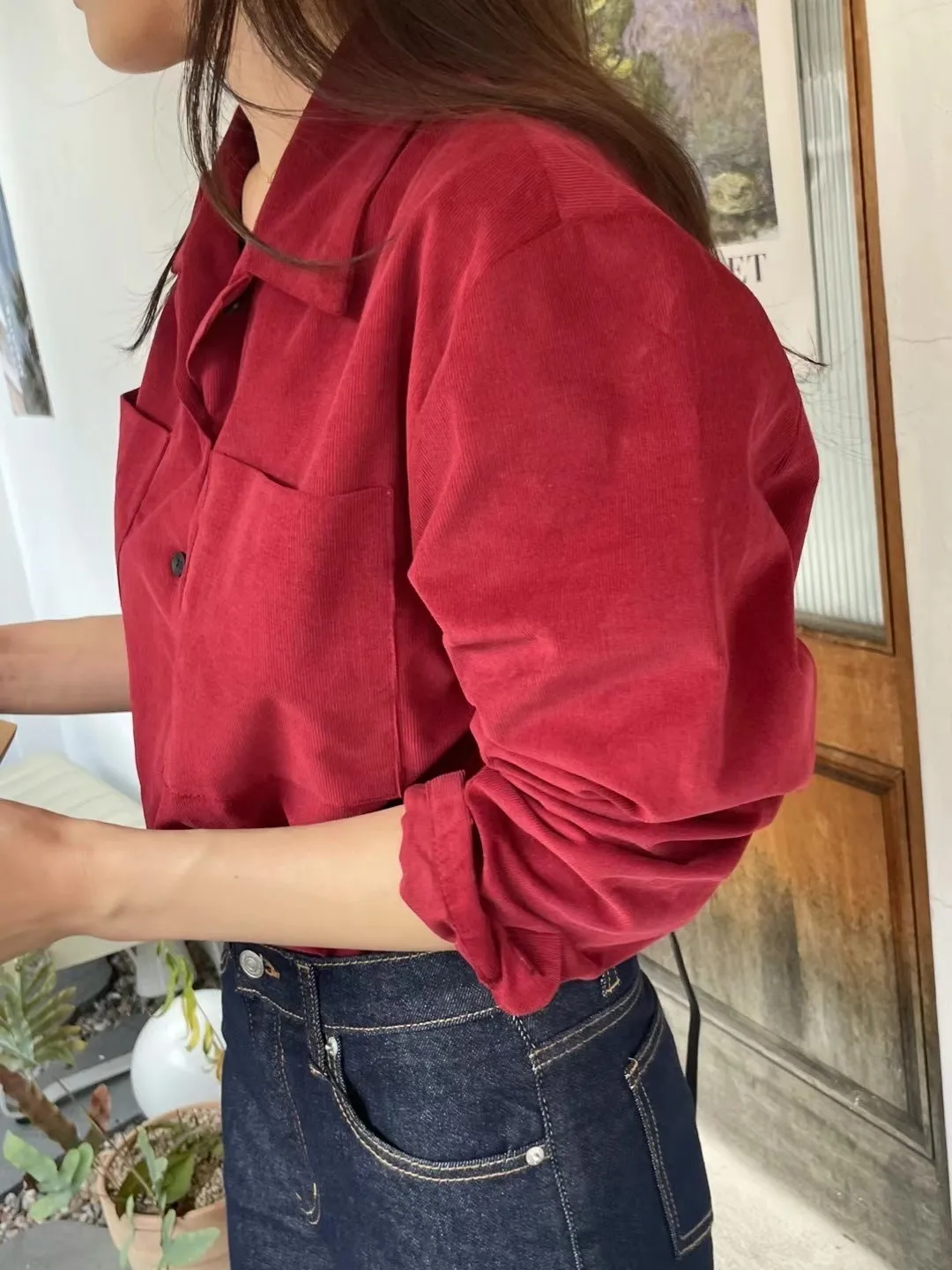 LV1021薄款細緻燈心絨雙口袋襯衫 米 藍 紅 官網價$750 永恆甜甜價$720